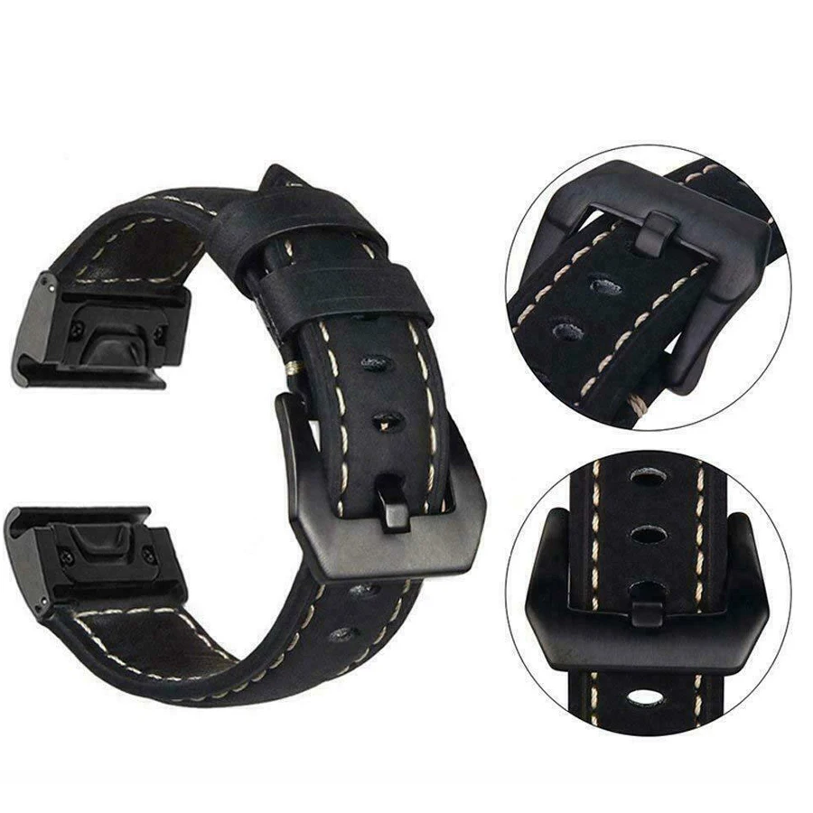 22 26mm Genuine Leather Quick Fit Watch Band Strap For Garmin Fenix 6X 5X 3 3HR Watch Easyfit Wristband For Garmin Fenix 6 5 Watch