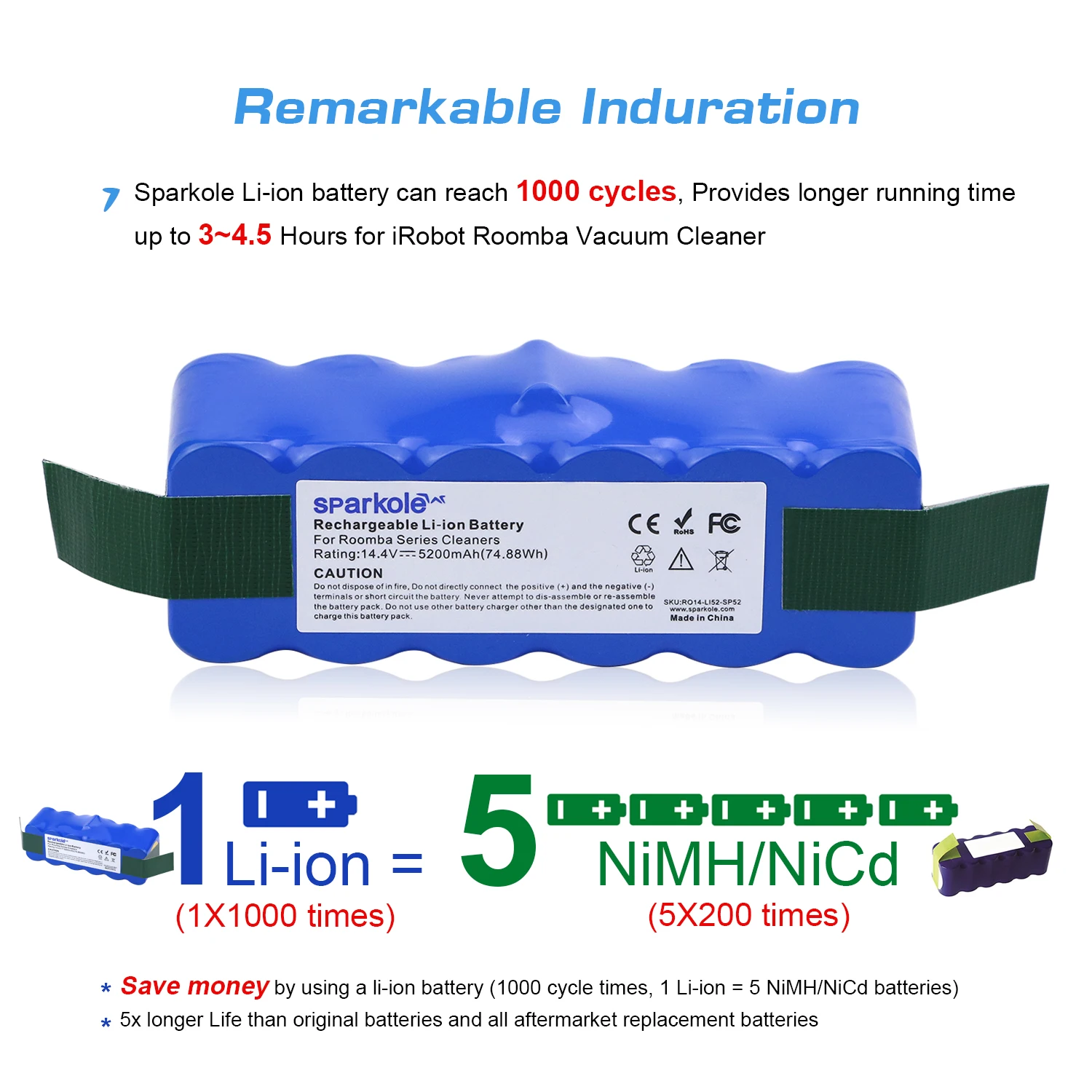 1 * SPARKOLE Замена 14,4 v 5.2Ah литий-ионная батарея