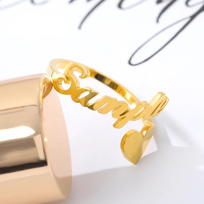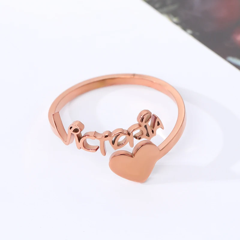 Индивидуальные Романтические кольца с именем сердца, свадебные ювелирные изделия из нержавеющей стали, прочные золотистые персонализированные обручальные кольца, подарок для женщин