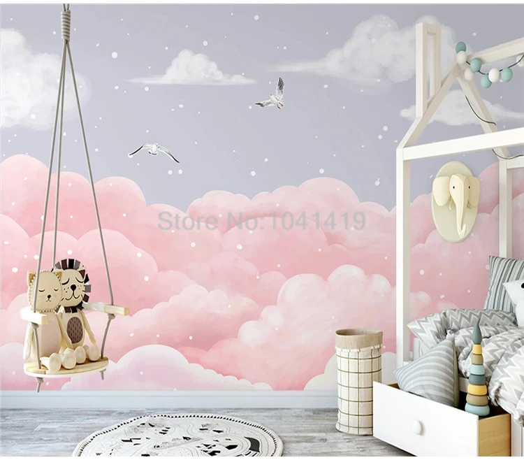 Настенные обои любого размера в скандинавском стиле, ручная роспись, фэнтези, облако, морская птица, детская комната, розовые обои для стен 3 D