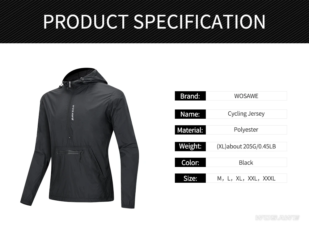 Описание:Велосипедный пуловер WOSAWE легко упаковывается в свой задний карман для быстрого, легкого и компактного хранения. Вы всегда можете держать под рукой.Идеально подходит для путешествий, бега, прогулок, велоспорта, кемпинга, рыбалки, альпинизма, любых видов активного отдыха на свежем воздухе.Особенности продукта:Свободный кройСветоотражающий логотипЛегкий и дышащийИмеет регулируемый подол шнуркаЭластичные манжеты помогают сохранить сухость одеждыБольшой карман на молнии в середине для храненияПодол на молнии для удобного надевания и снятияВодоотталкивающая ткань защищает от брызг, а также светильник от дождяУпаковка заднего кармана для удобства и эффективностиПосылка включает в себя: 1 велосипедная майкаСпецификация:Название: Джерси для велоспортаЦвет: черныйМатериал: полиэстерРазмер: M,L,XL,2XL,3XLВес:(XL) около 205 г/0.45LBКостюм для взрослыхПосылка: полиэтиленовый пакетПрилагается: WOSAWE меткиПрименение: мотоцикл, Велоспорт, бег, туризм, рыбалка, альпинизм и т. д.