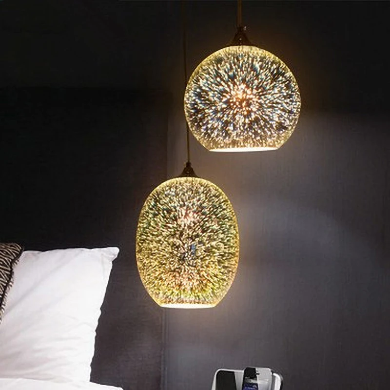 Современные разноцветные подвесные 3D лампы в скандинавском стиле, Светодиодная лампа E27 с абажуром в виде звездного неба, стеклянная лампа для кухни, ресторана, гостиной