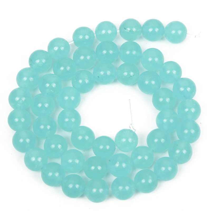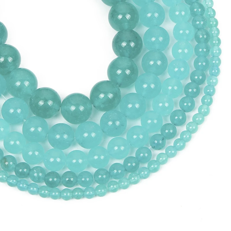 Гладкий синий Амазонит, халцедон, нефрит, круглые свободные бусины-...