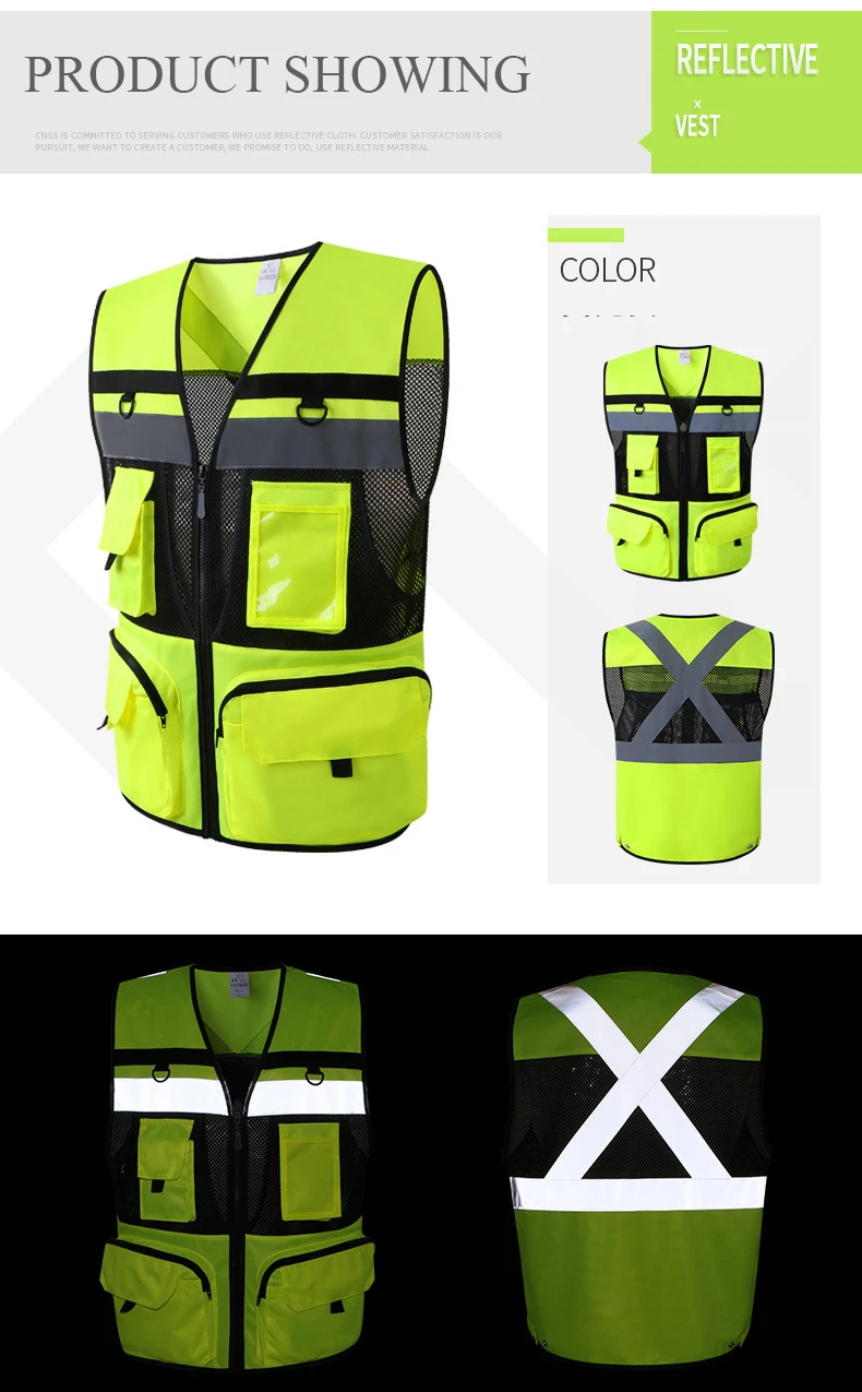 Защитный жилет, сетчатый дышащий жилет для работы, светоотражающий жилет желтого цвета, рабочая одежда, летняя куртка