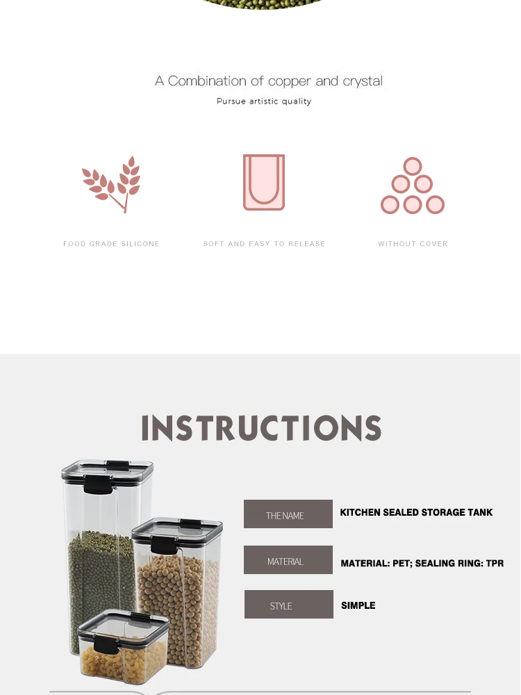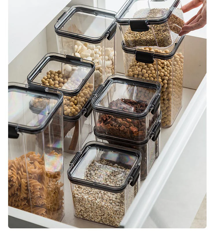 Контейнер для хранения пищевых продуктов, кухонный прозрачный герметичный контейнер для сухих зерен, сухого молока, сахара, органайзер, банки, аксессуары