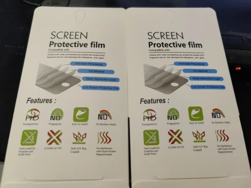 Отличная плёнка, очень тонкая, покрытие огонь, такое ощущение, будто её вообще нет. Почему-то в комплекте с двумя плёнками один набор наклеек и салфеток, этот момент не понял. Please put two installation kits! I ordered two films and yet I have only one kit in the box.