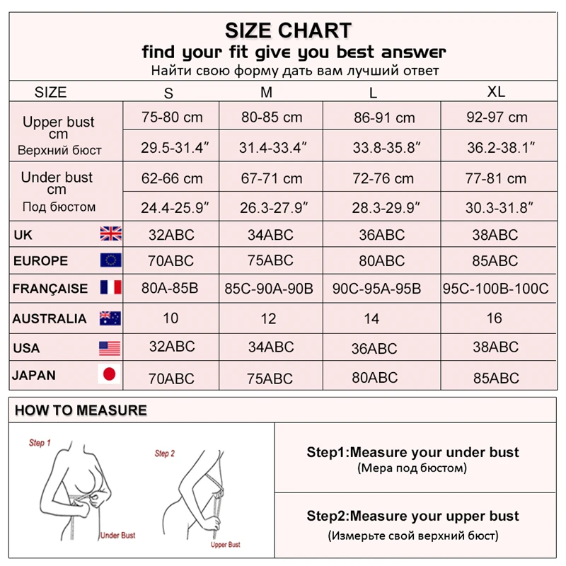 Взяла Size: XL 38ABC ,мой размер под грудью 85В подошло, но вот чашки, где то под мышками, грудь не поместилась. По качеству норм, но не понятно на какую это грудь.