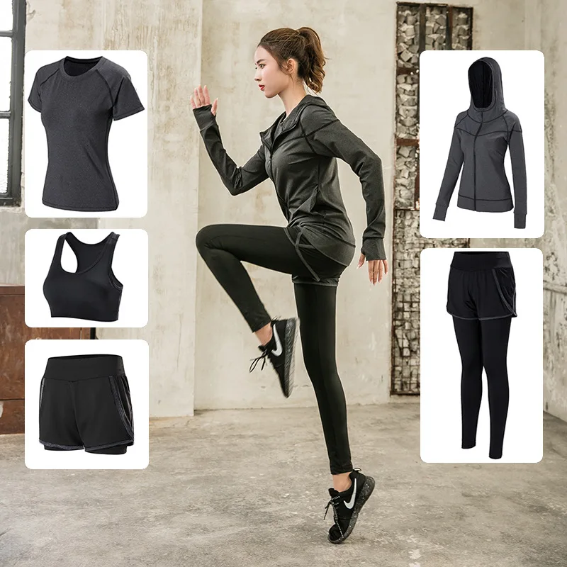 5 шт. спортивный комплект для бега, женский спортивный костюм, колготки для йоги, быстросохнущая Спортивная одежда для бега, тренировок, тренажерного зала, фитнеса, бега, спортивный костюм, одежда