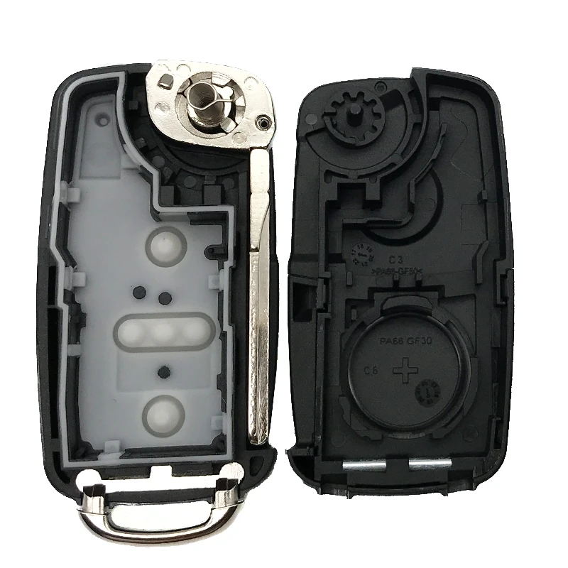 Эмбрион ключа: Да (Необрезанный) Кнопки: кнопок Состояние на 100% абсолютно новый Цвет: как на картинке Пустой ключ: Да Чип транспондера: нет Электроника/аккумулятор: нет Вес: 45 г Логотип: Нет Посылка входит: 1 X чехол для ключей Применимость: для VW Tiguan Golf POLO Passat и других моделей, которые совпадают с нашими изображениями! Важное примечание: 1. Этот товар не является пультом дистанционного управления, это просто замена корпуса дистанционного ключа. 2. Внутри нет модуля (пульт дистанционного управления/электроника/чип транспондера). 3. Перед покупкой убедитесь, что ваш ключ выглядит так же, как на изображении нашего продукта выше. 4. Отрежьте лезвие у местного слесаря/дилера или замените лезвие на оригинальное. 5. Из-за ручного измерения возможно отклонение в размере на 1-2 мм/дюйм, пожалуйста, внимательно проверьте свой размер перед покупкой.