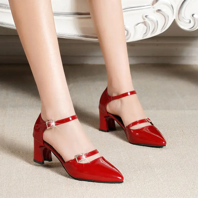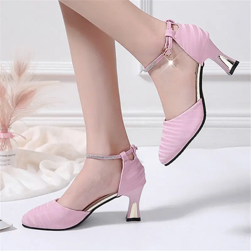 Женские модные милые розовые удобные туфли-лодочки на шпильке; Повседневные высококачественные свадебные туфли-лодочки с ремешком и пряжкой; Zapato Tacon; E5955