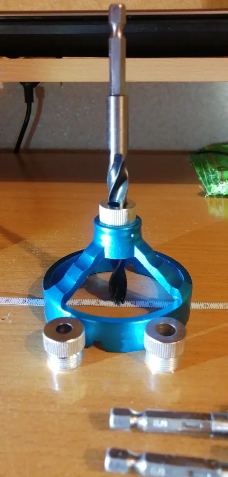 Товар отправлен быстро, доставка в Украину меньше месяца. К работе магазине претензий нет. Товар отличается от того, что изображено на картинке. Изготовлено ровно и качественно...но.. Пользоваться неудобно, практическая ценность сомнительна. Реально 14 долларов на ветер. Сами "гайки" с отверстиями без какой-либо маркировки, подбирать сверла "методом тыка" неудобно. Но не в этом проблема. Высота направляющей от рассверливаемой плоскости до верха "гайки" - 58 милиметров. От общей длины сверла отнимаем глубину патрона дрели и 6 сантиметров высоты... В итоге специально для этой приблуды надо искать ещё и длинные сверла :(
