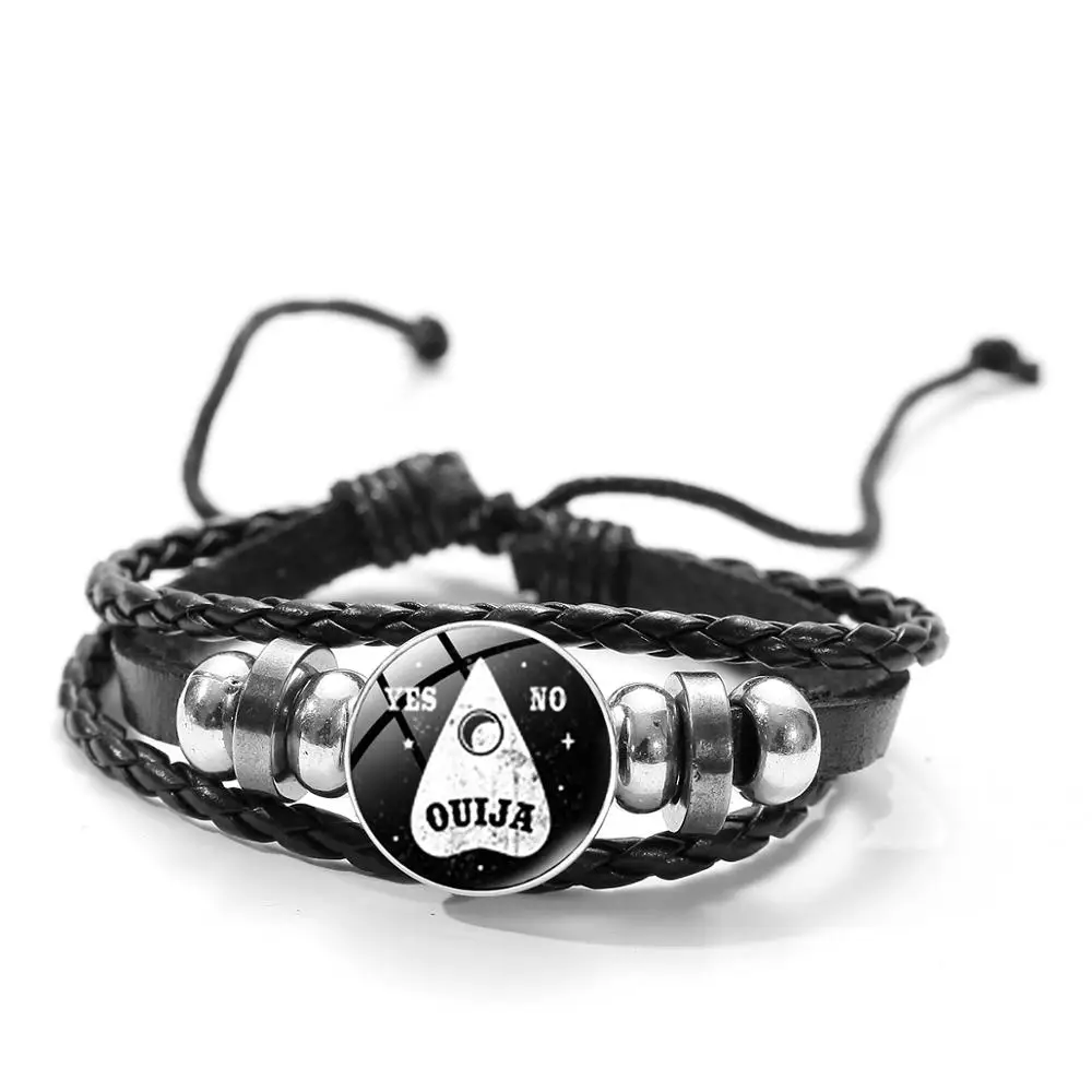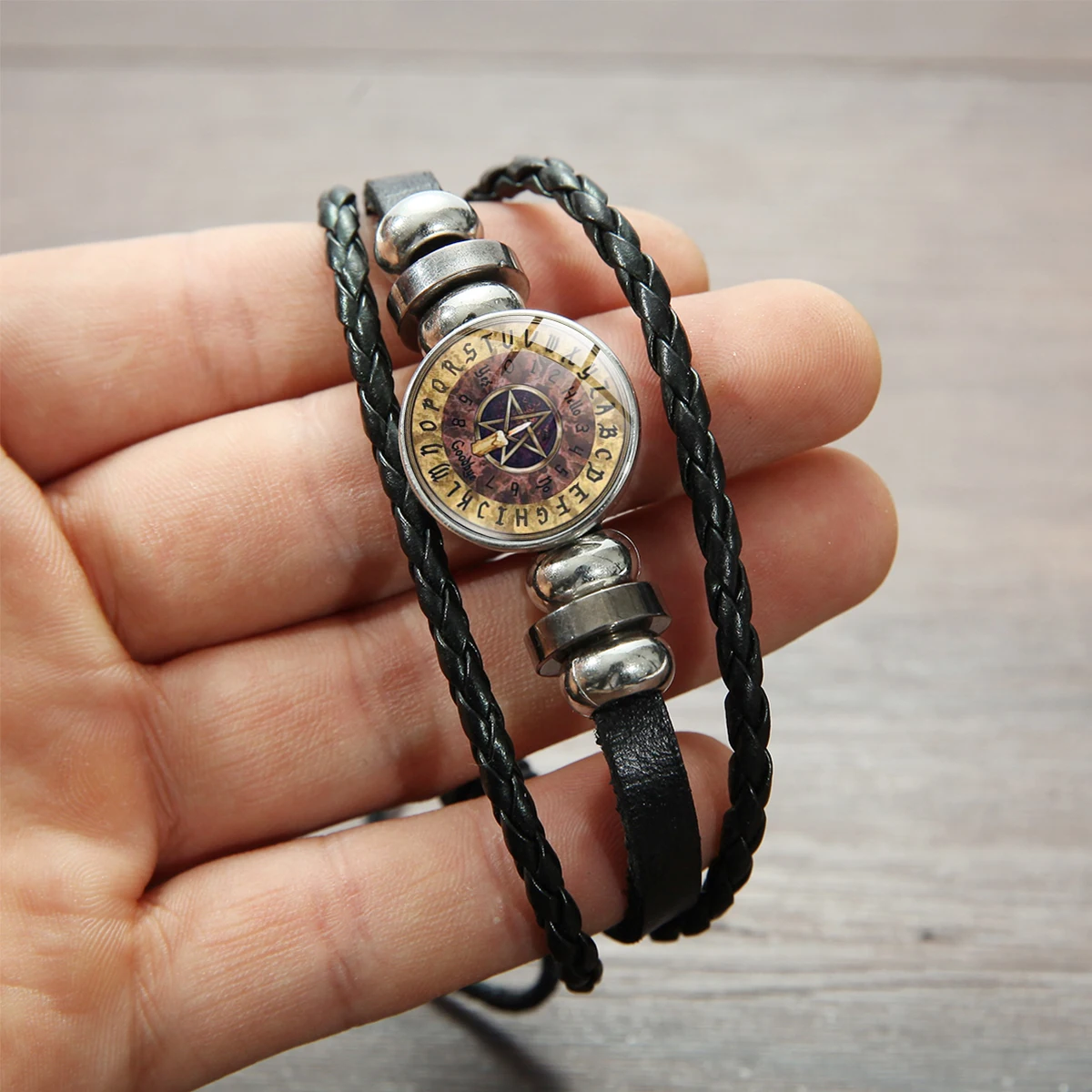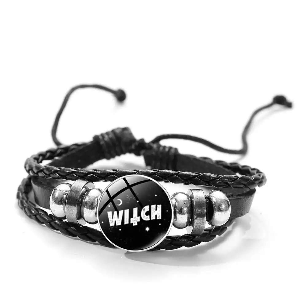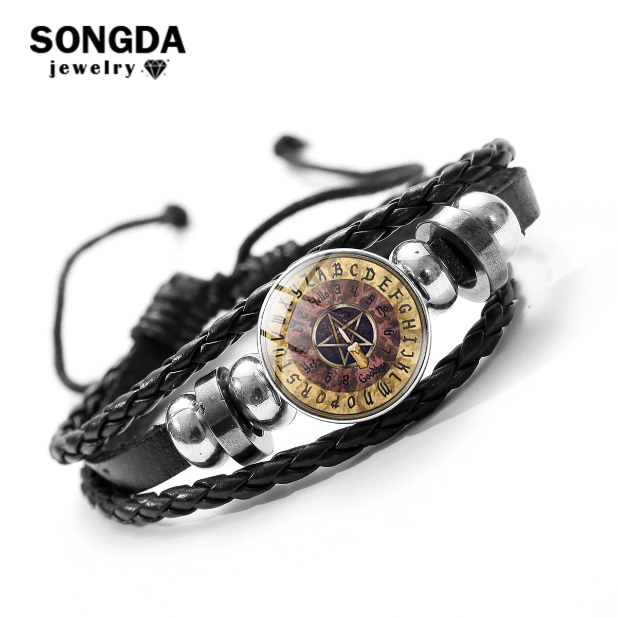 Женский кожаный браслет SONGDA Magic Witchcraft с пентаграммой, готический браслет с ведьмой, котом, черепом, темным узором, стеклянным кабошоном, застежкой-кнопкой