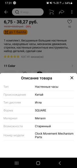 вместо механизма часов прислали стрелки Спор решил за 2 дня с возвратом денег, будте внимательны, на картинке не всегда то, что в описании, а в описании не всегда то, что отправляют