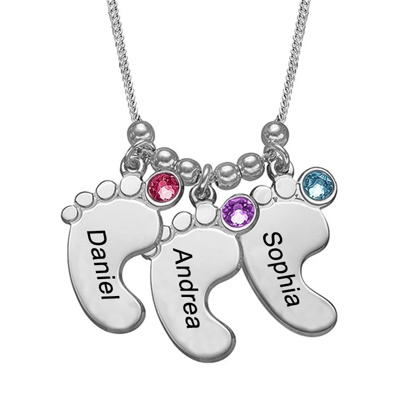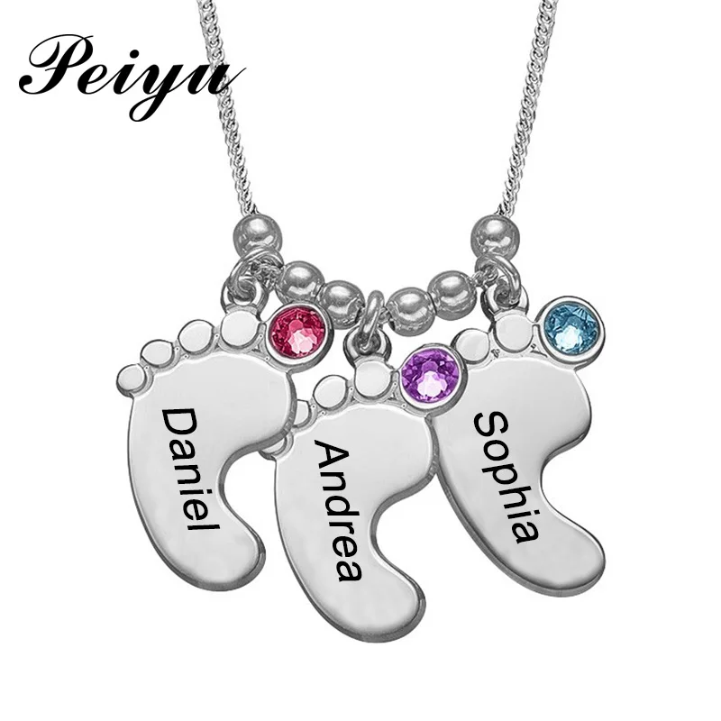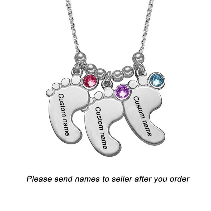 Детские ноги ожерелье с зодиакальным камнем с гравировкой 3 наименования изготовленный на заказ ожерелье из нержавеющей стали серебряного и золотого цветов, подарок на день матери, ювелирные изделия
