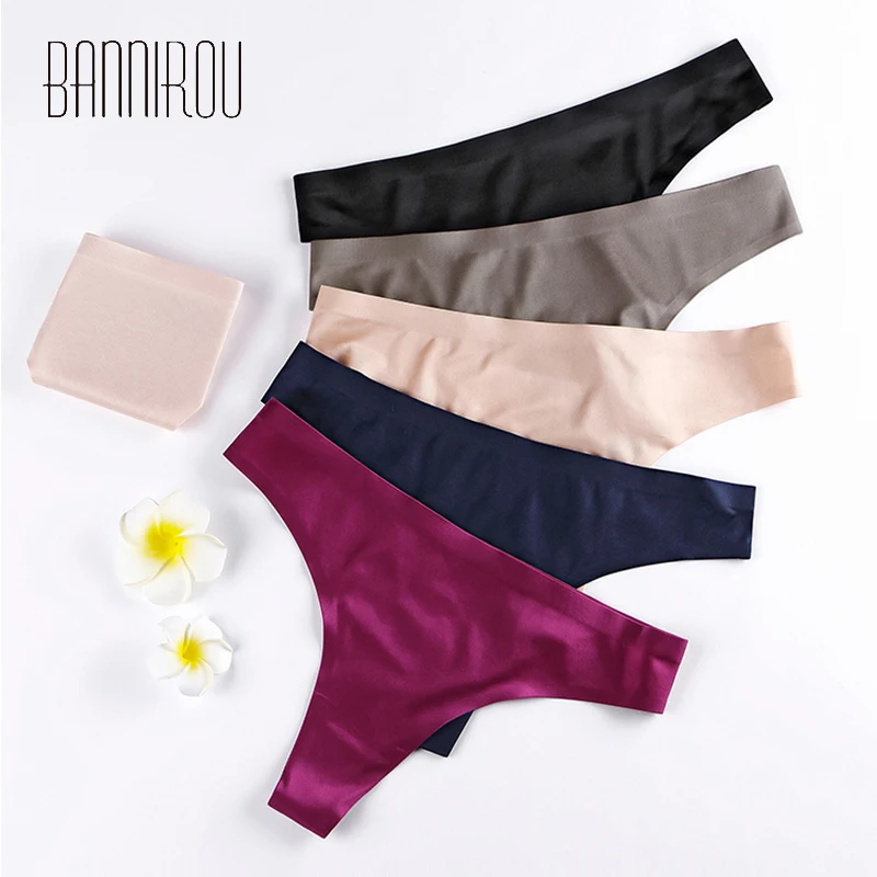 BANNIROU 1 шт. сексуальное нижнее белье для женщин бесшовные спортивные трусы женские Т-образные однотонные мягкие стринги ледяной шелковые трусы-бикини для женщин нижнее белье