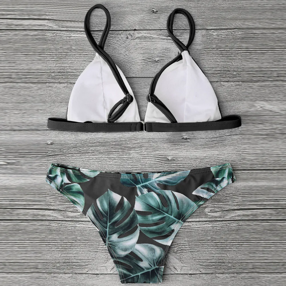 Женский комплект бикини с цветочным принтом и принтом в виде листьев, летний купальный костюм с пуш-ап и высокой талией, женский купальник, пляжный купальник, Badeanzug Damen