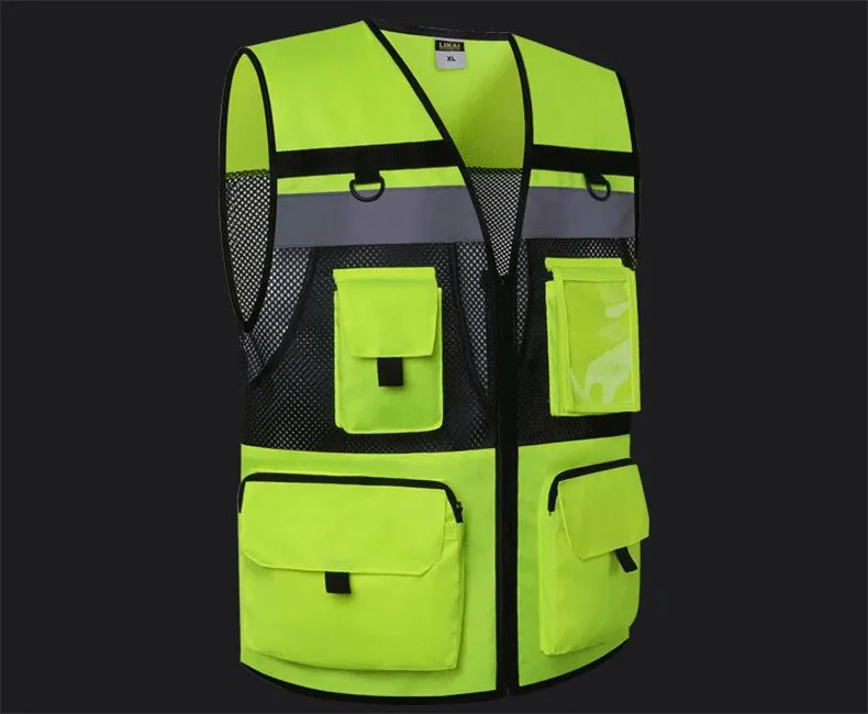Светоотражающий защитный жилет Hi Vis, сетчатая летняя безрукавка, куртка, жилет с несколькими карманами, рабочая одежда для мужчин, защитный предупреждающий жилет