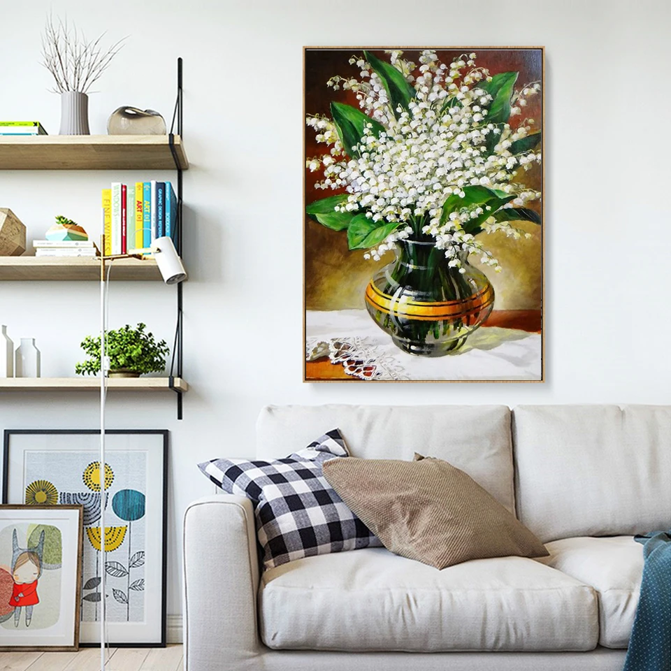 2020 Алмазная картина Meian с цветами, круглые бусины, ландыши, картины стразы, цветы, вышивка, набор для рукоделия