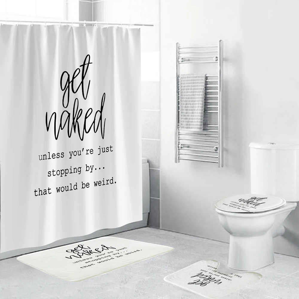 Набор из 4 предметов, белая занавеска для душа из полиэстера, нескользящий коврик для ванной комнаты, декор сделай сам, с принтом с цитатой