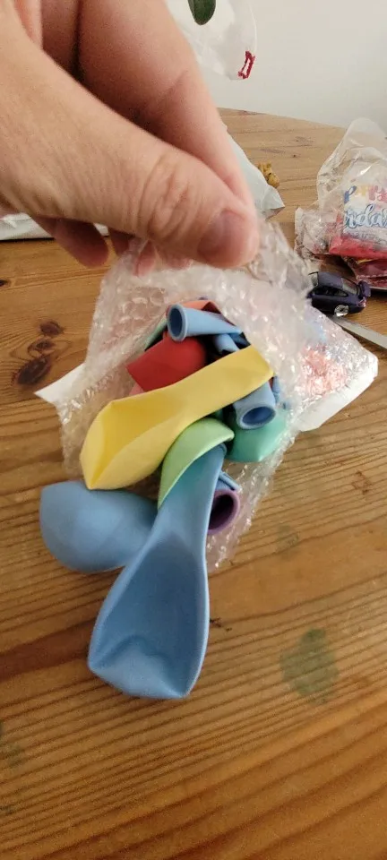 Воздушные шары милые, некоторые наполовину, некоторые ошибки в производстве. Дорого, потому что 30 воздушных шаров для 14 реальных. Лучшая покупка в Бразилии, из-за высокой доставки.