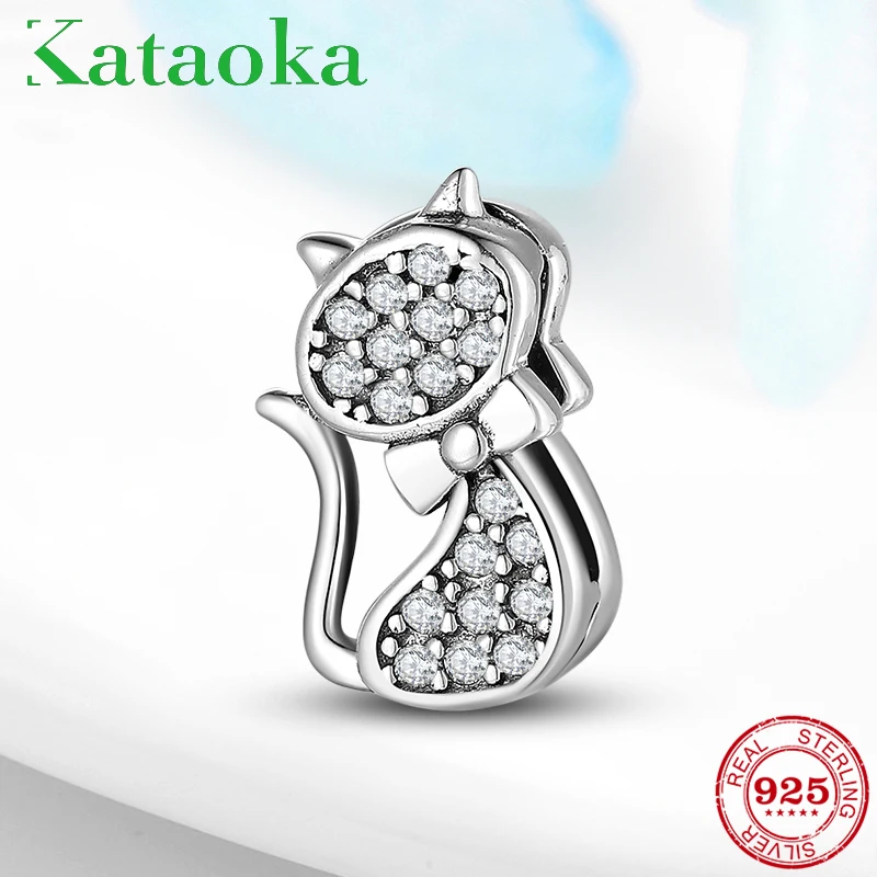 Женский браслет из серебра 925 пробы, с зажимом в виде кошки