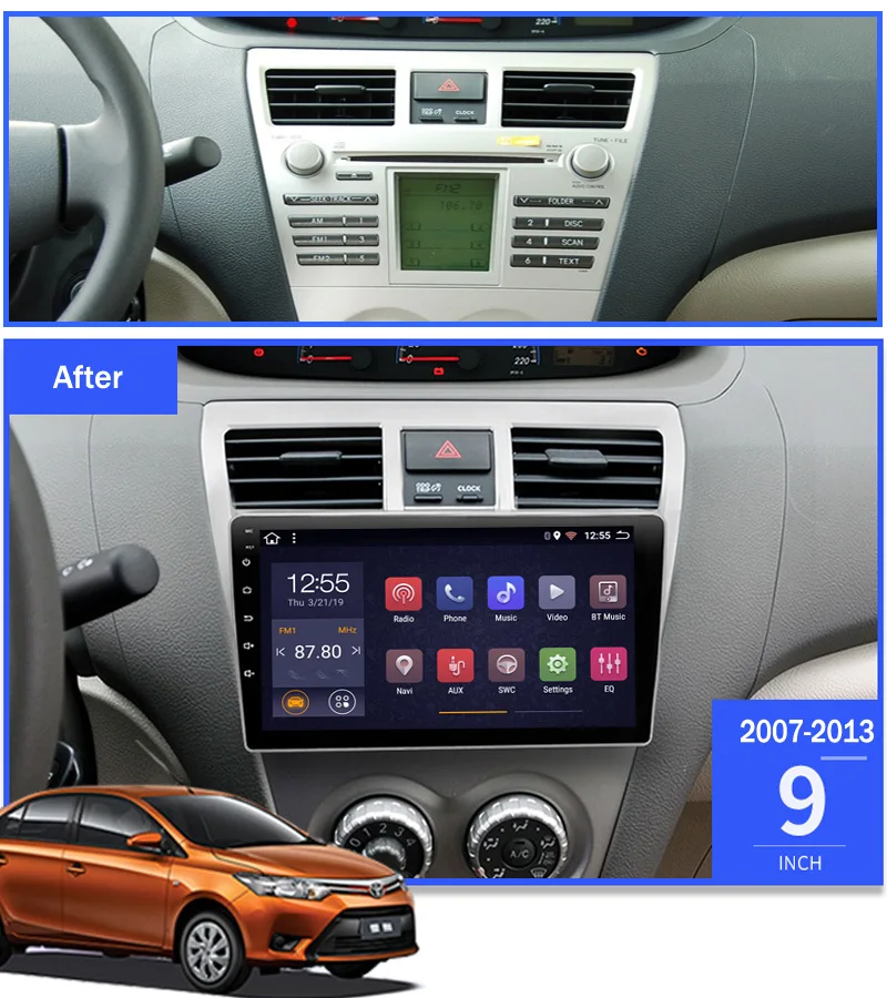 Автомобильный мультимедийный плеер, 9 дюймов, сенсорный экран, Android 8,1, для Toyota Vios, Yaris, Belta, Gps-навигационная система, радио, Bluetooth, 1 Din