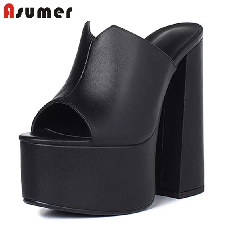 Женские босоножки на платформе ASUMER, из натуральной кожи, вечерние толстом высоком каблуке, Клубная обувь, 2021