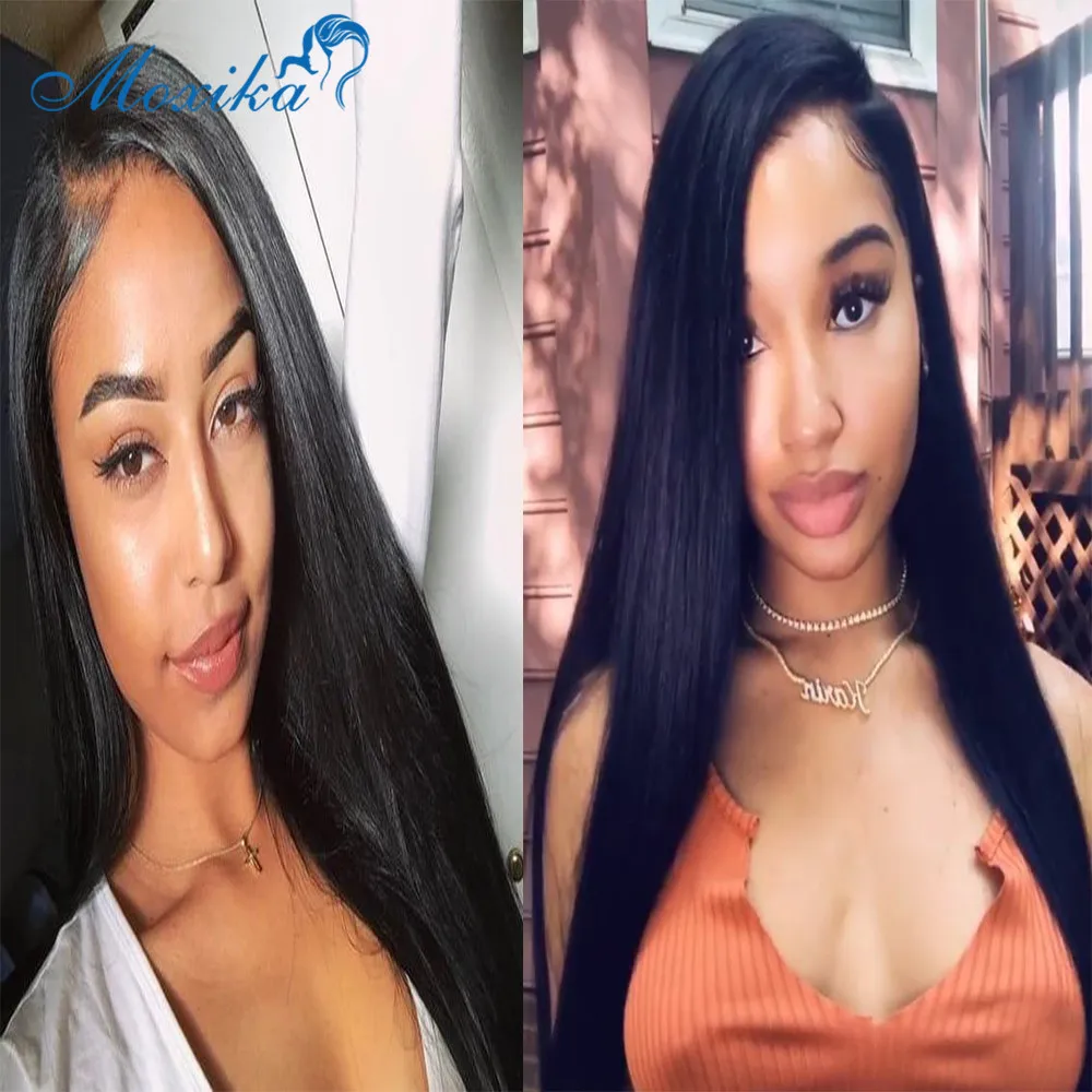 Перуанские прямые волосы Moxika, пряди с застежкой, человеческие волосы, 3 пряди с передними прямыми волосами, пряди с 13*4 передними Реми