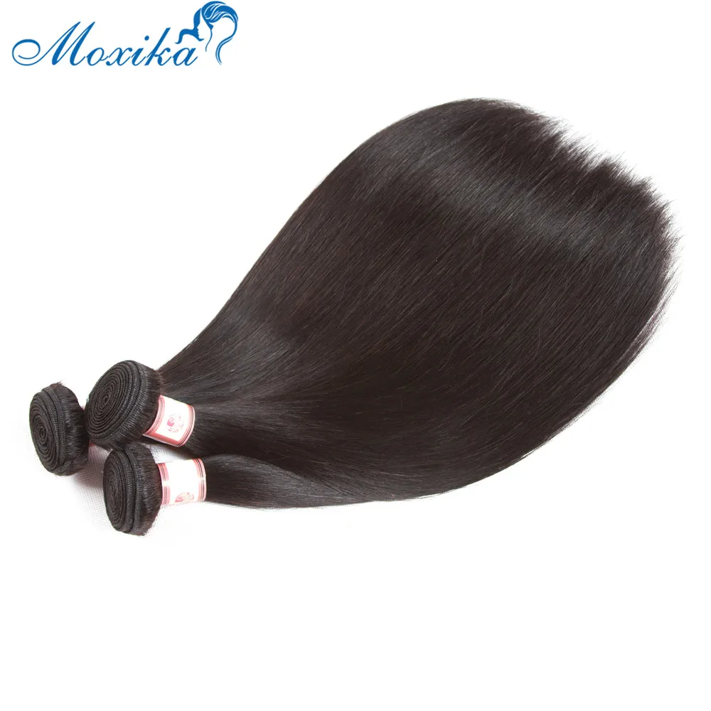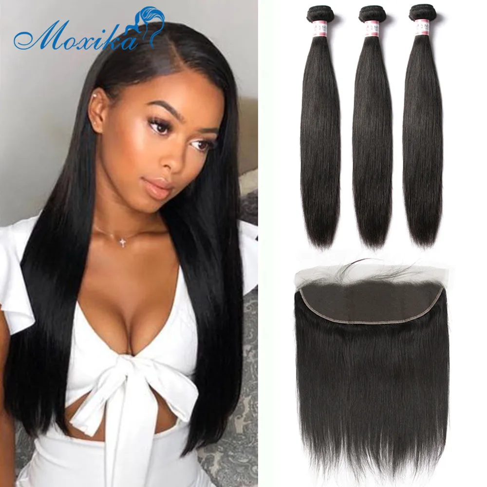 Moxika перуанские прямые человеческие волосы пряди с закрытием Remy перуанские волосы плетение с закрытием кружева Фронтальная пряди 3 шт