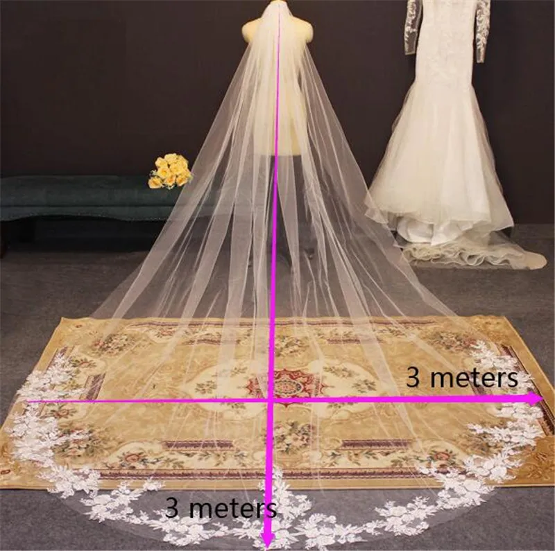 Длинные Кружевные Свадебные вуали 3 м длинная белая цвета слоновой ...
