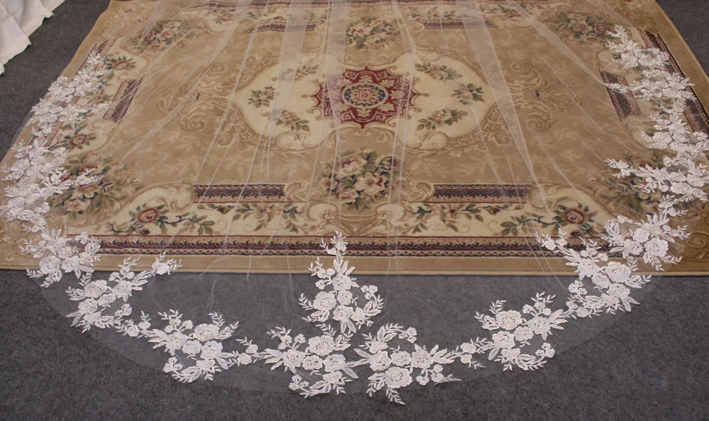 Реальные фотографии 2 T длинная кружевная свадебная фата 4 метра бе...