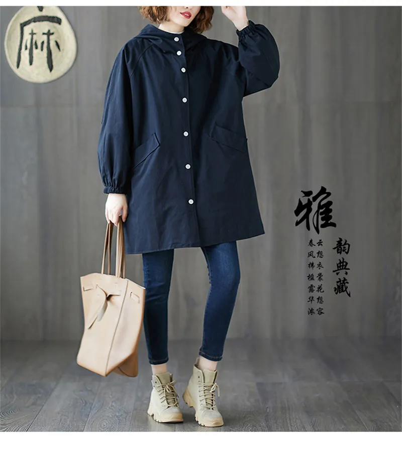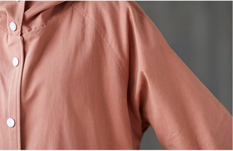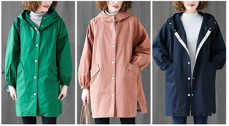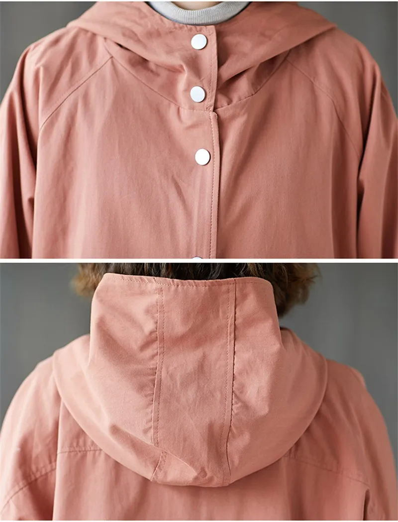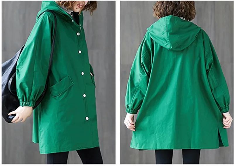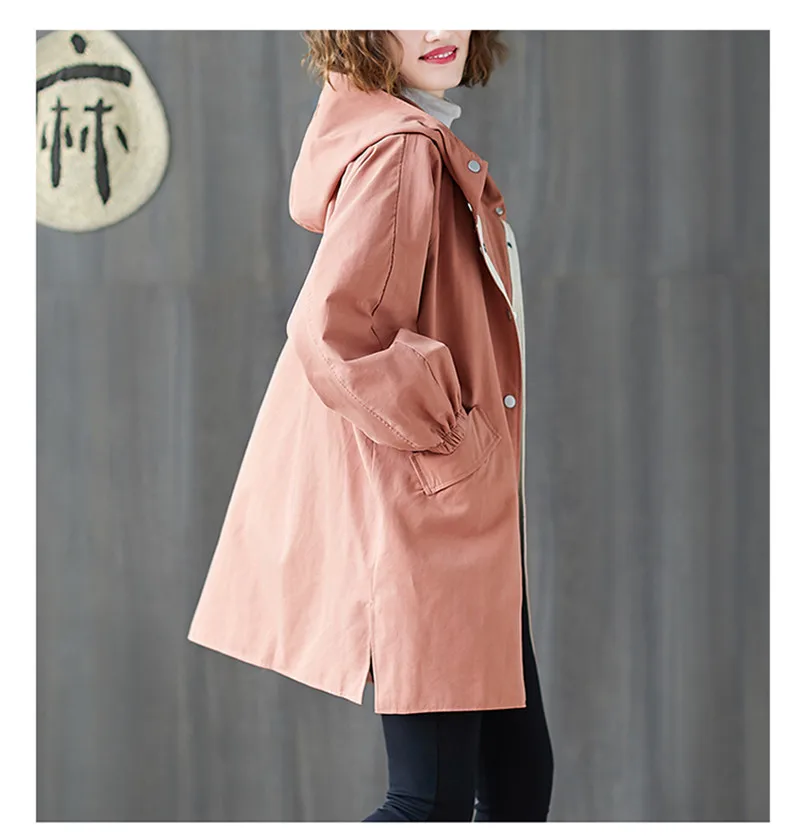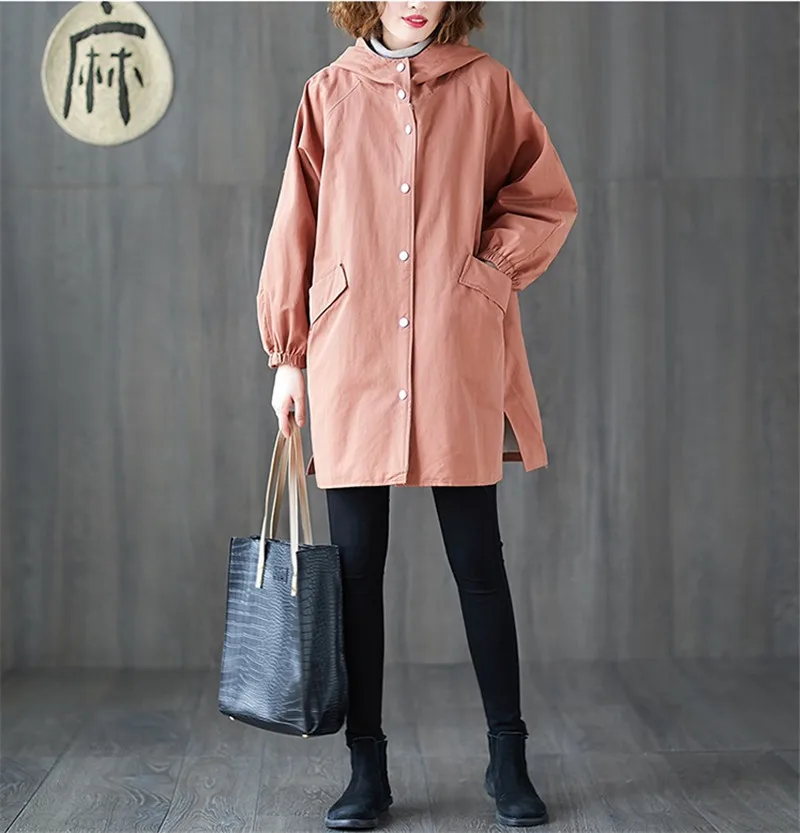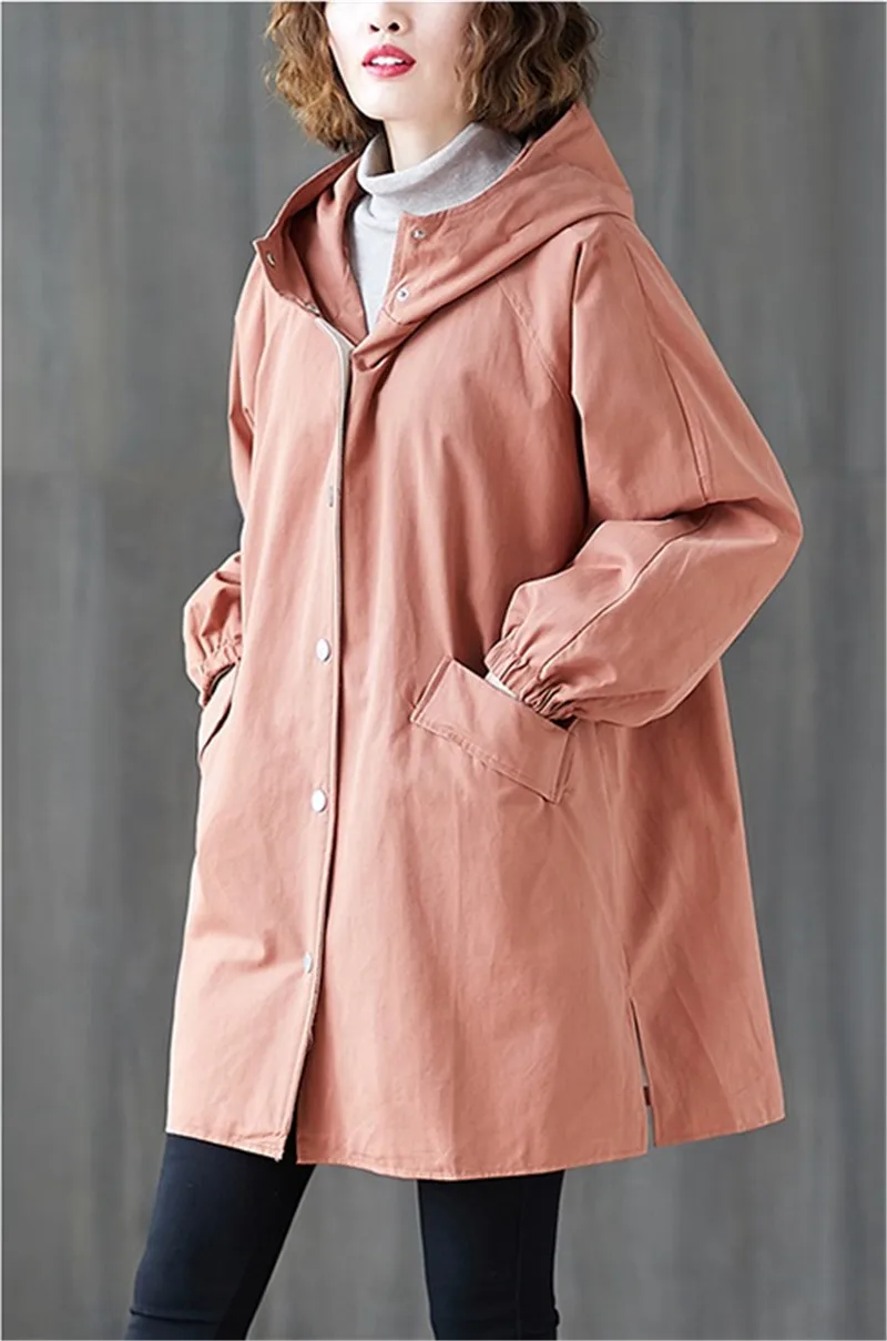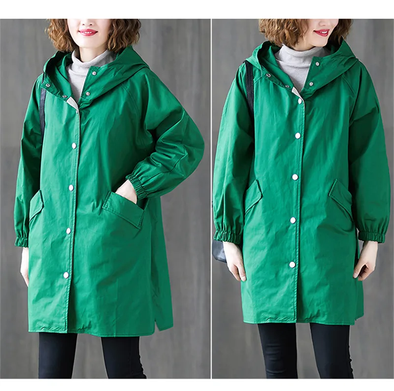 Тренчкот женский с капюшоном, свободная однобортная ветровка средней длины, Одежда большого размера, весна-осень