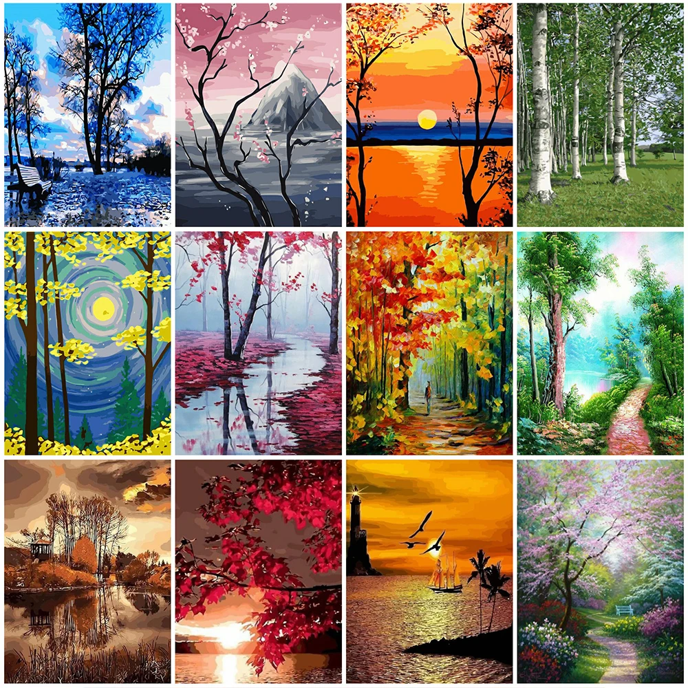 Evershine картины по номерам дерево Раскраска по номерам пейзаж ручная роспись Рисование холста стена Искусство Домашнего декора