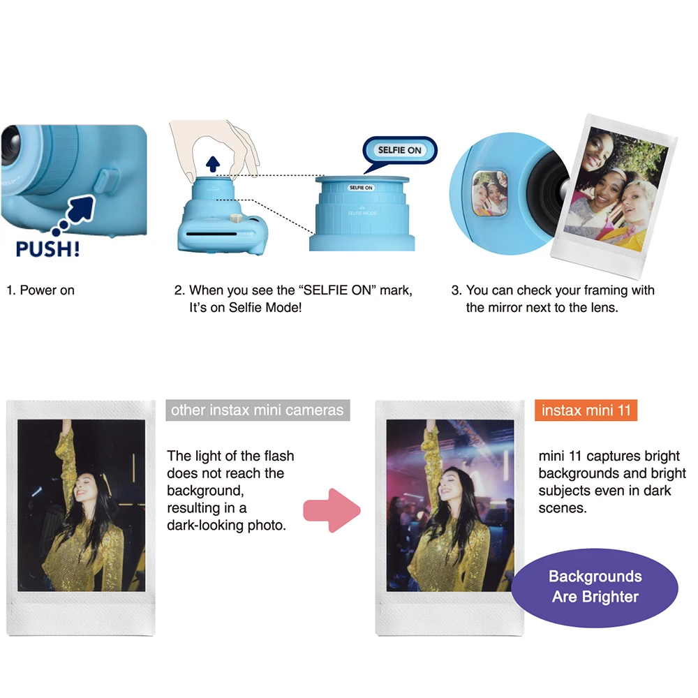 Фотоаппарат моментальной печати Fujifilm Instax Mini 11, 5 цветов, розовыйголубойугольно-серыйледяной белыйсиреневый фиолетовый