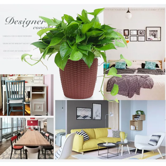 Крышка для горшка из ротанга для комнатных растений, круглая Современная искусственная прочная Автоматическая поливка растений