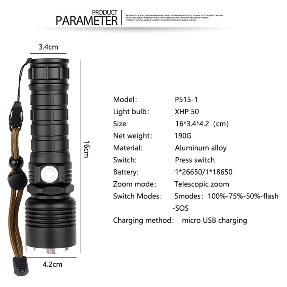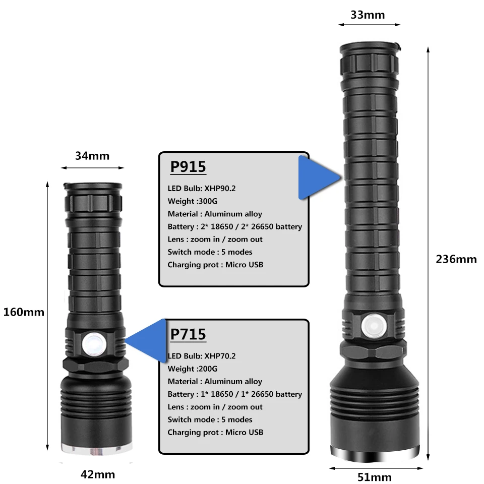Мощный светодиодный фонарик использует CREE XLamp XHP50 led для максимальной выходной мощности до 30000 люменов