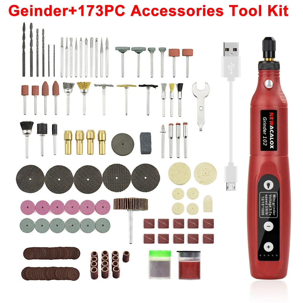 Мини-шлифовальный станок NEWACALOX, с зарядкой по USB, с регулируемой скоростью, набор поворотных инструментов, шлифовальный набор с набором аксессуаров для гравировки 126 шт.