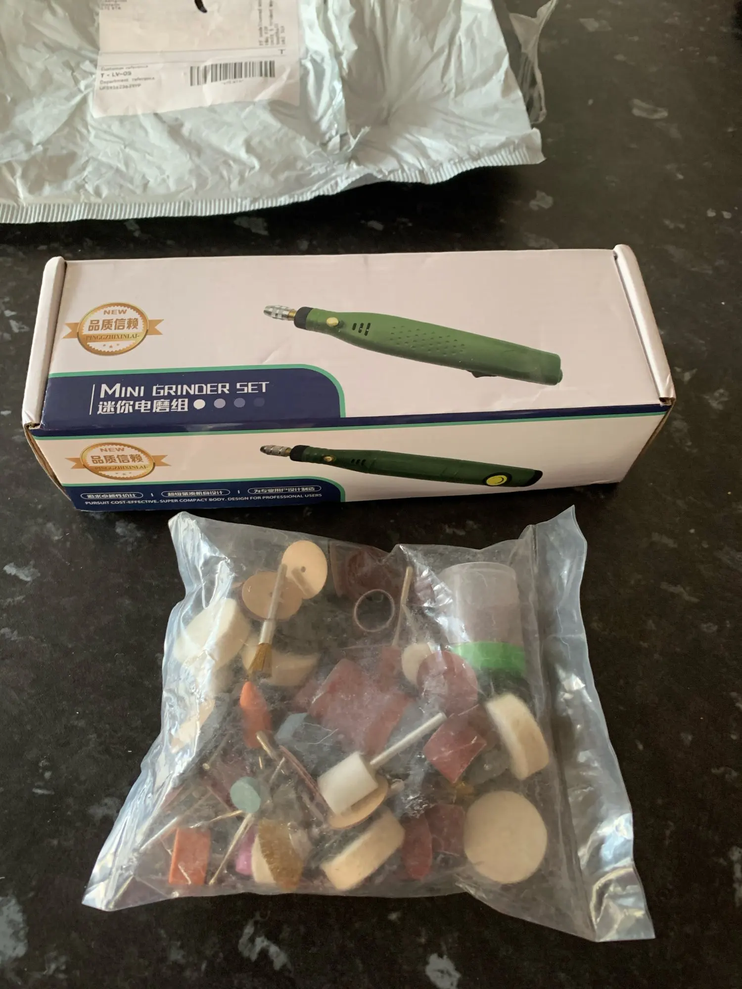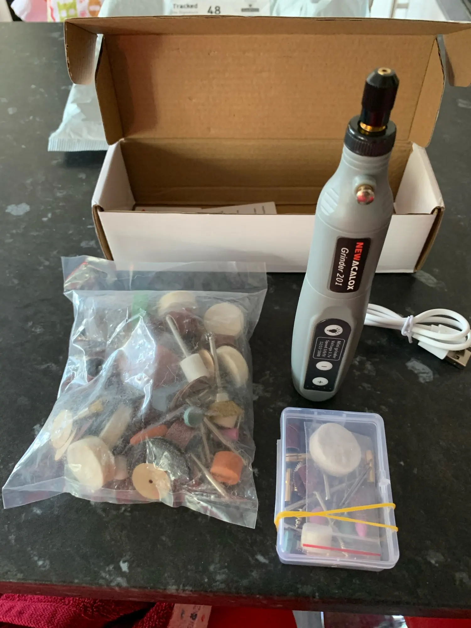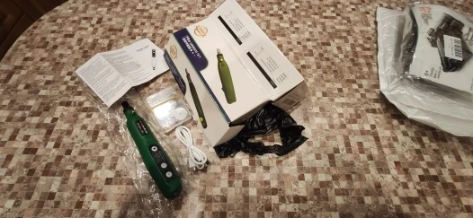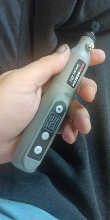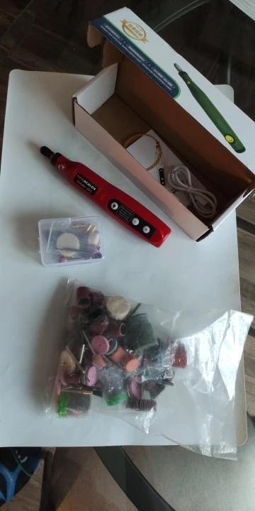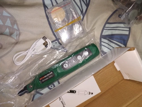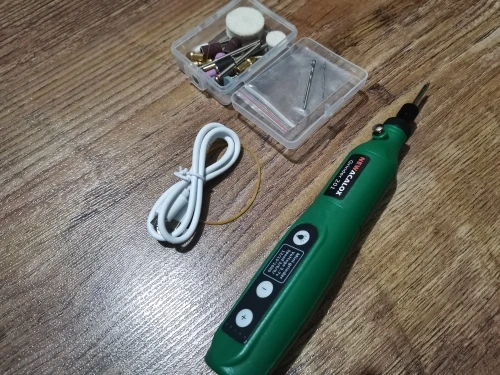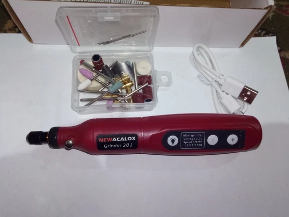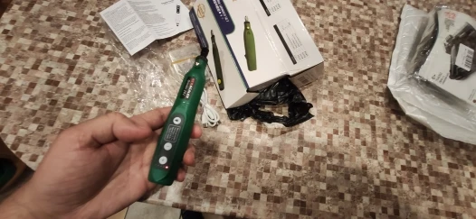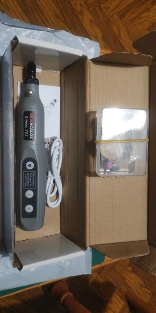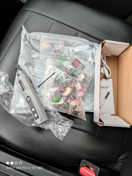 Очень классная машинка, брала для полировки и шлифовки изделий из эпоксидной смолы, куча насадок. Коробку купила сама в фикс прайсе)) по чёрной пятнице брала за 1632’85₽ со всеми насадками чёрного цвета. На пятой скорости 25к оборотов. Также удобный свет на самой машинке для освещения изделия или того, с чем работаешь. В общем красота, очень довольна, всем советую продавца. Пришла очень быстро