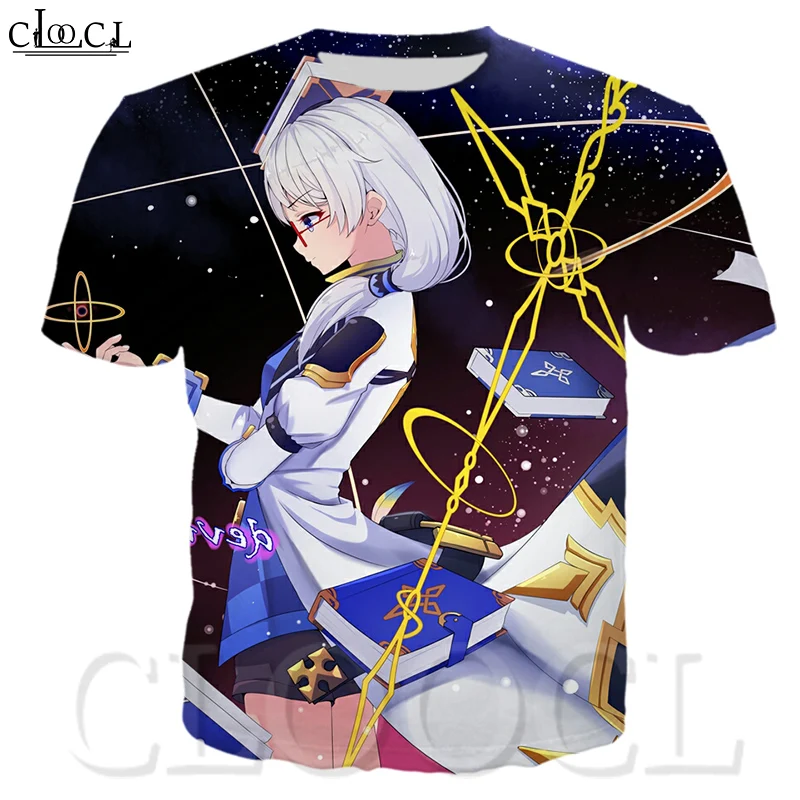 Мужская футболка CLOOCL, летняя футболка с рисунком игры Honkai Impact 3, модная и Повседневная футболка унисекс с круглым вырезом размера плюс