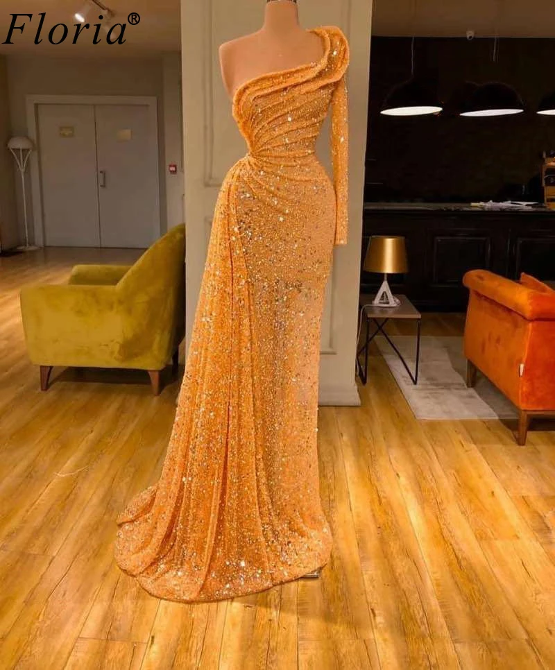 Модные оранжевые коктейльные платья от кутюр 2020, длинные мусульманские платья для выпускного вечера, женские вечерние платья на одно плечо с бисером