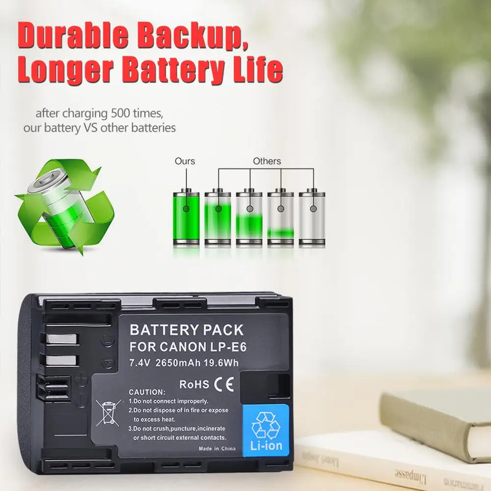 Batmax 2650mAh LP E6 LPE6 LP-E6 батарея + LCD двойное зарядное устройство USB для Canon EOS 5DS R 5D Mark II 5D Mark III 6D 7D 80D 90D EOS 5DS R камера