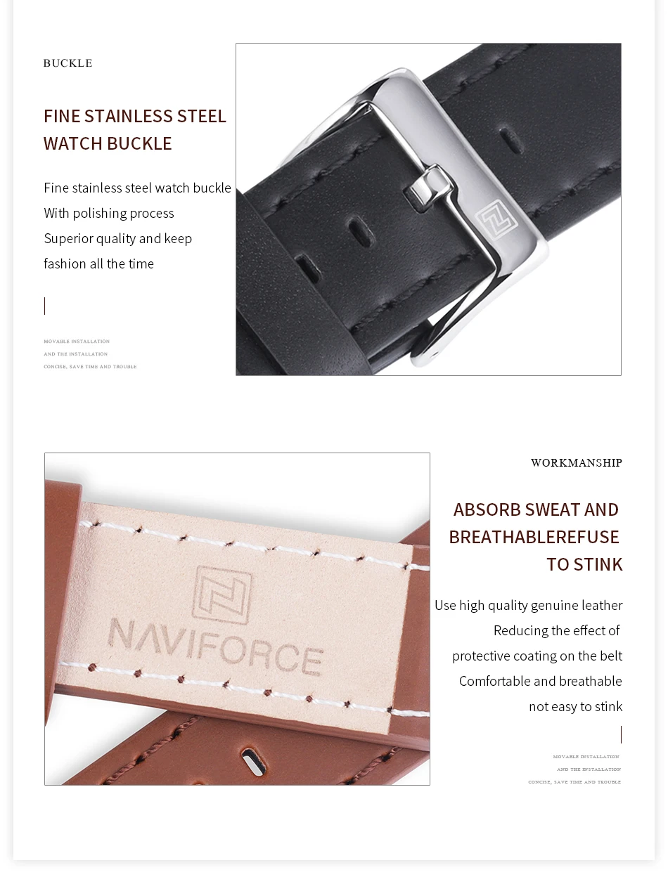 NAVIFORCE Genuine Leather Strap Watchbands Men 24mm Watch Wrist Str...