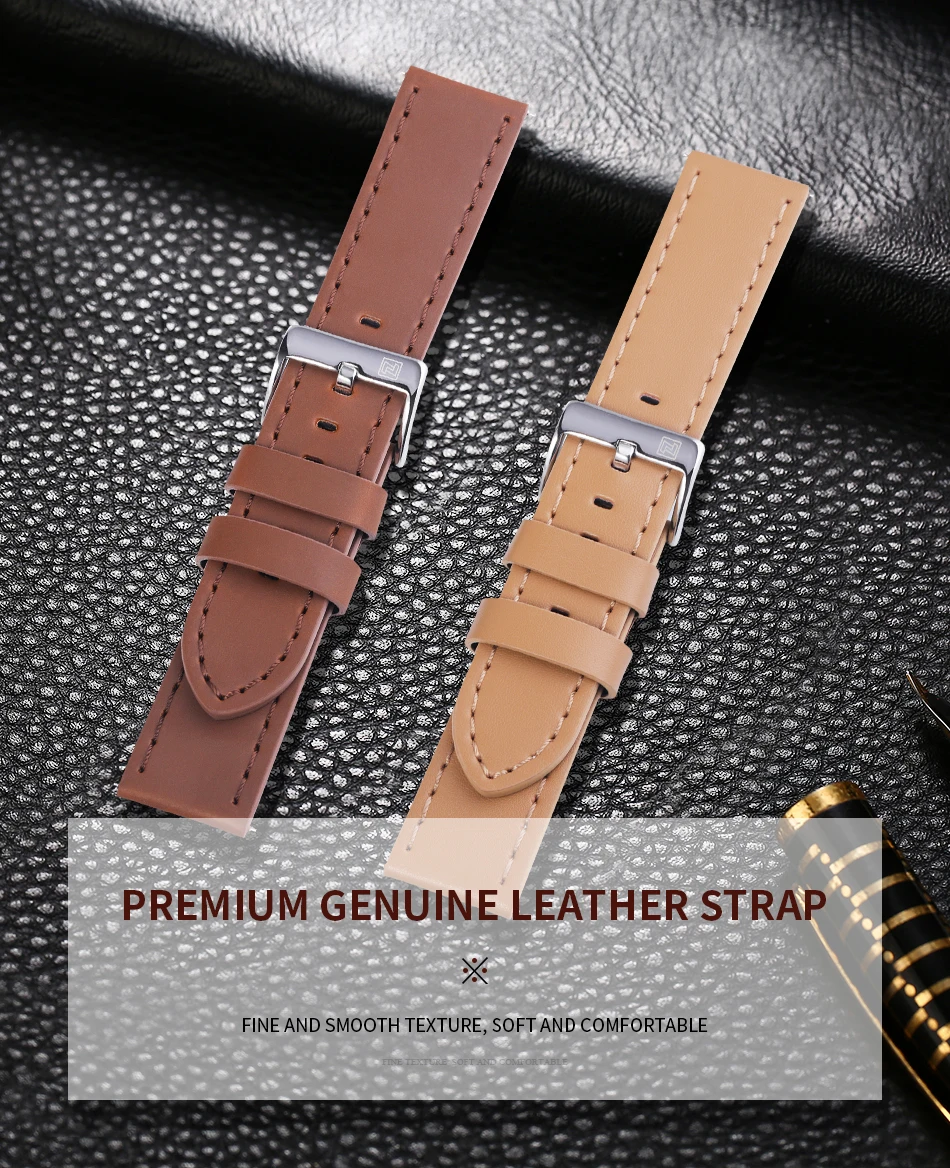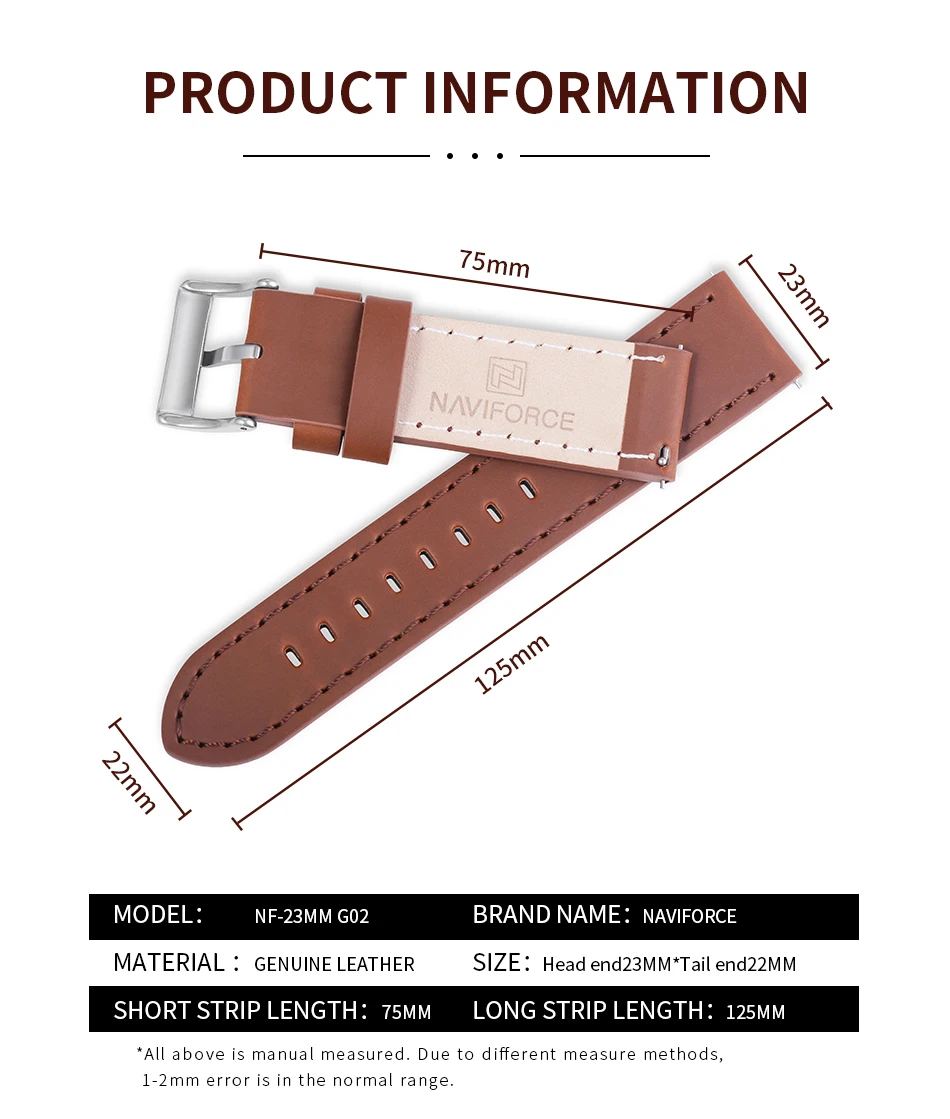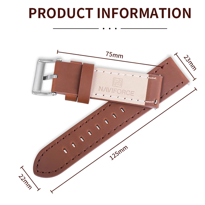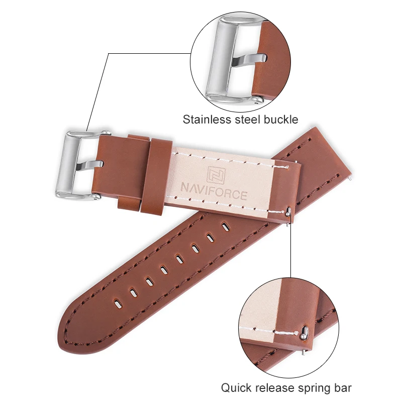 Ремешок для часов NAVIFORCE G03, натуральная кожа, коричневый, 20 мм