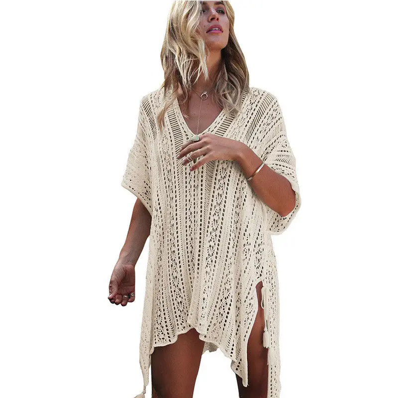 Женское бикини накидка Холлоу вязаное пляжное платье Летнее свободное купальный костюм