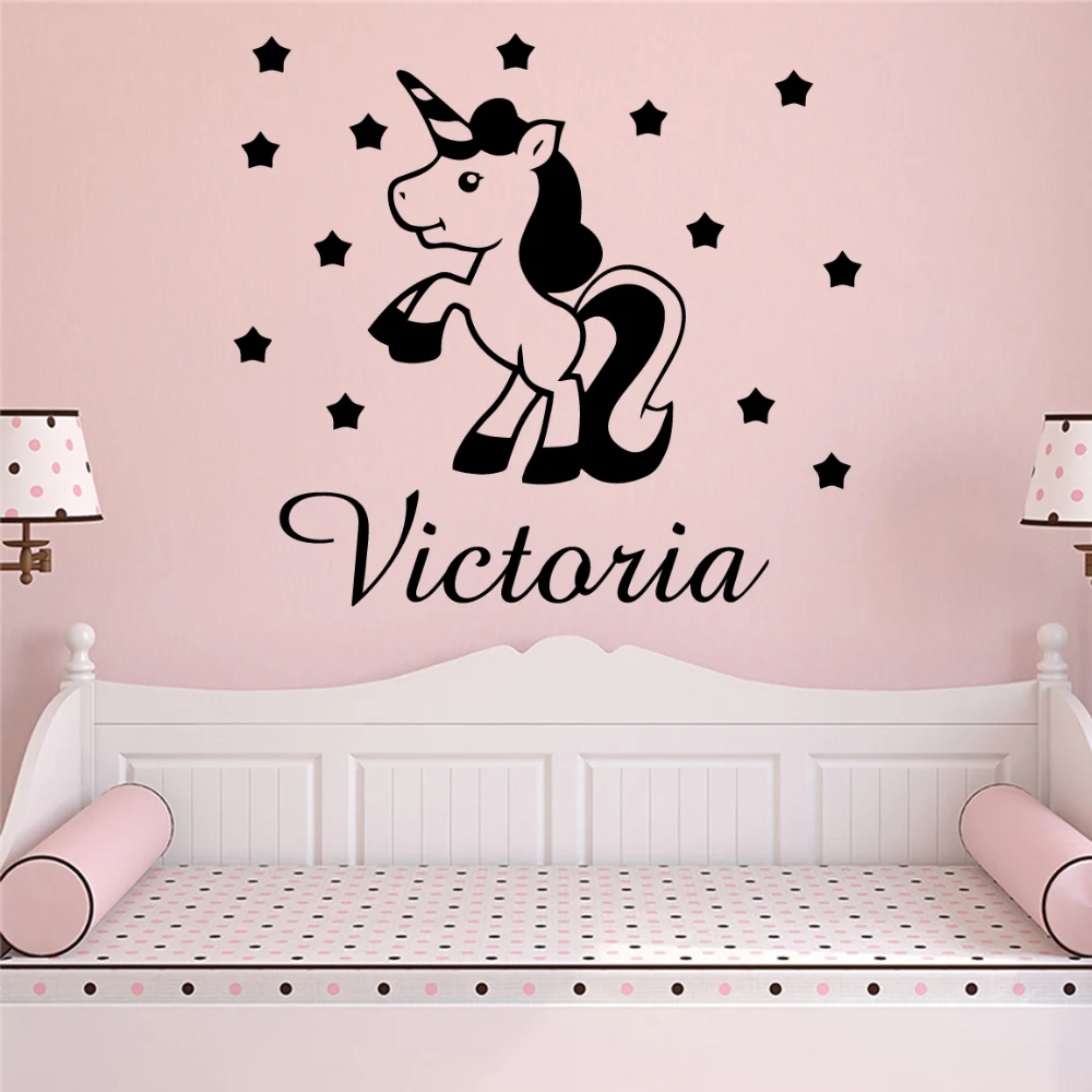 Самодельные наклейки с изображением единорога для девочек, наклейки на стену для детской комнаты, водонепроницаемые наклейки на стену