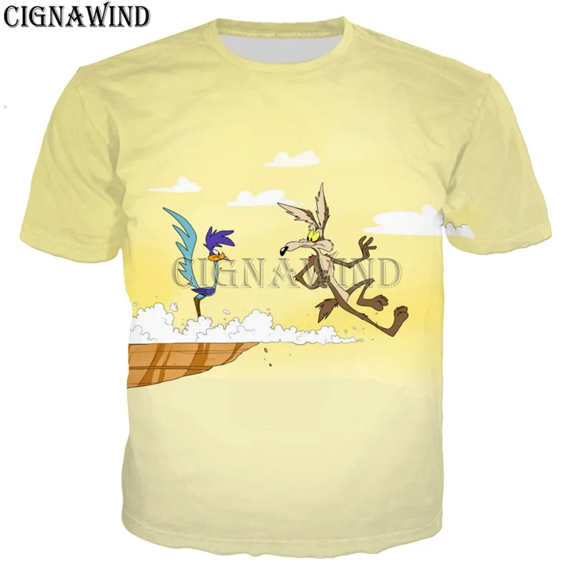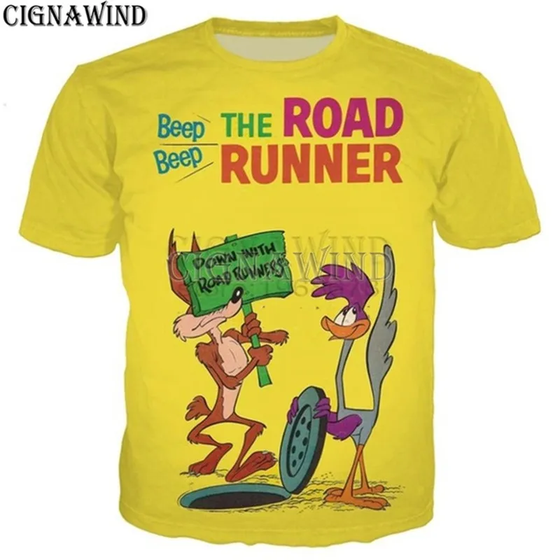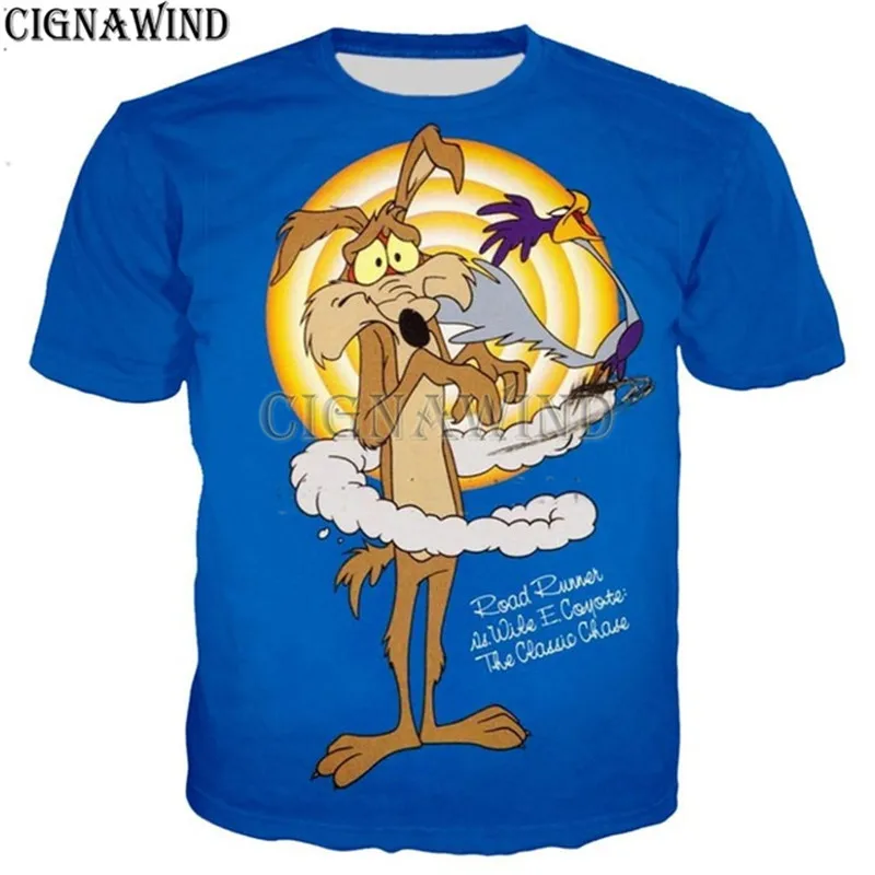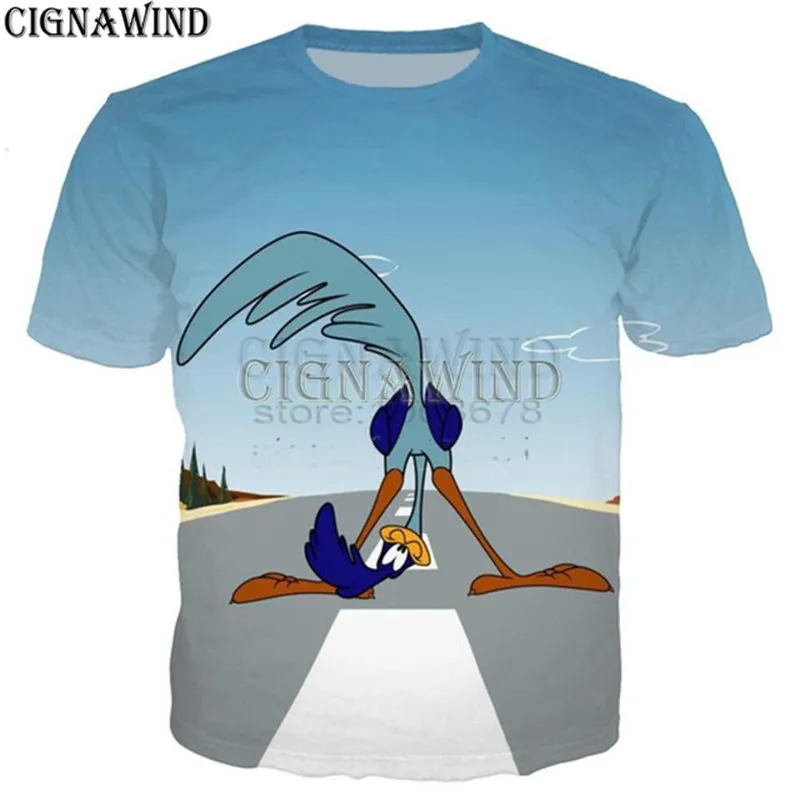 Новинка, Забавные футболки для мужчин и женщин, футболка с 3D рисунком Roadrunner wile e coyot, Повседневная футболка в стиле Харадзюку, уличные Топы