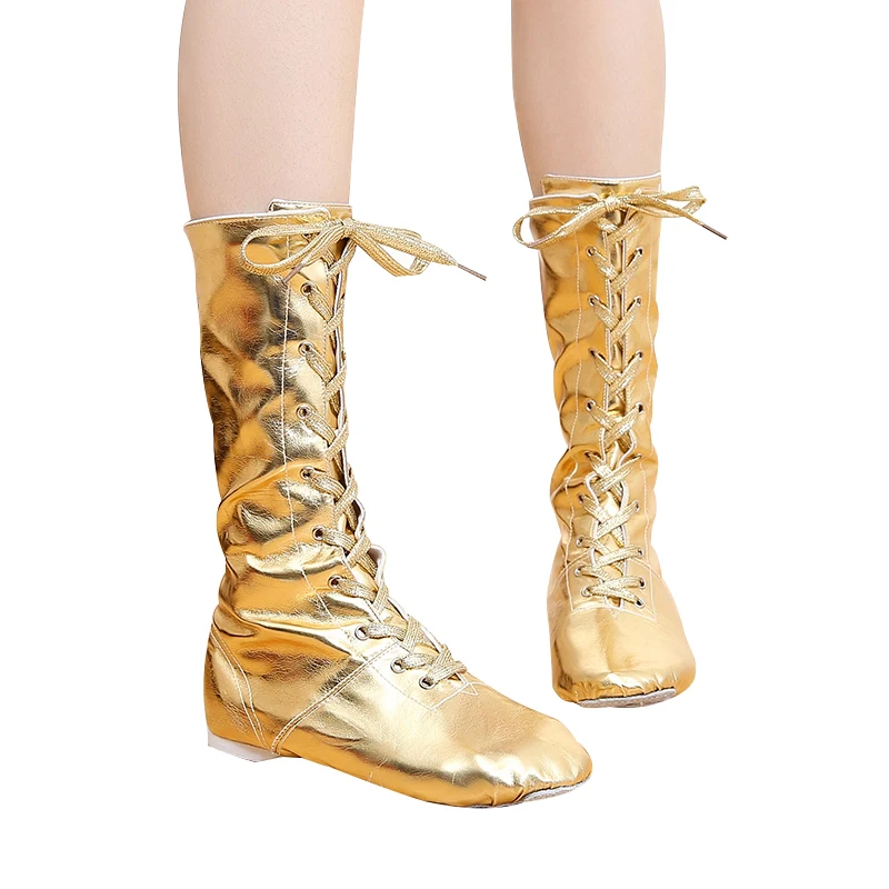 2022 женские кожаные ботинки для танцев; Цвет золотой и серебряный цвета; Обувь для джазовых танцев; Спортивные кроссовки; Высокие ботинки; Бесплатная доставка