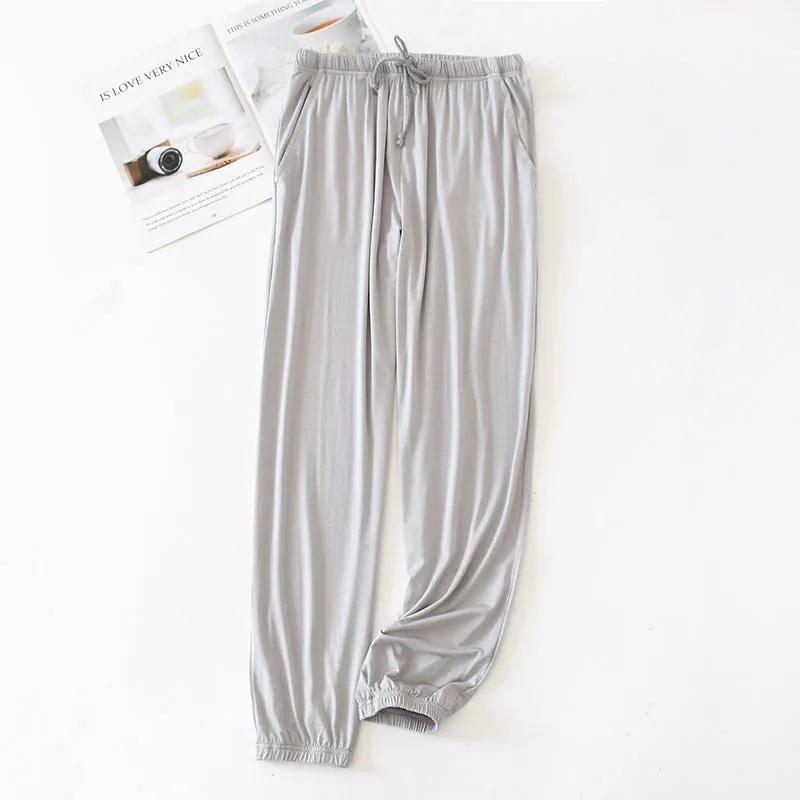 Пижамные брюки мужские из модала, эластичные штаны с завязкой на щи...