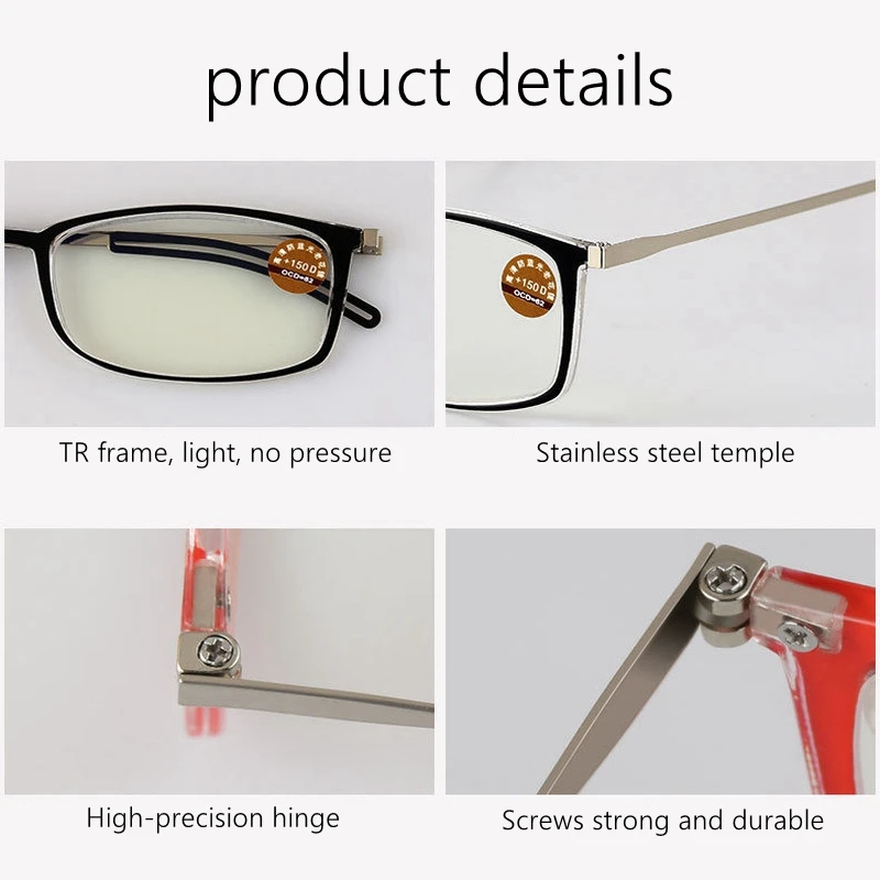 Горячий продавать высокое качество ультра светильник с защитой от УФ-светильник, мужские очки для чтения с чехол металлический каркас пресбиопии очки женщин TR90 Gafas черный, красный