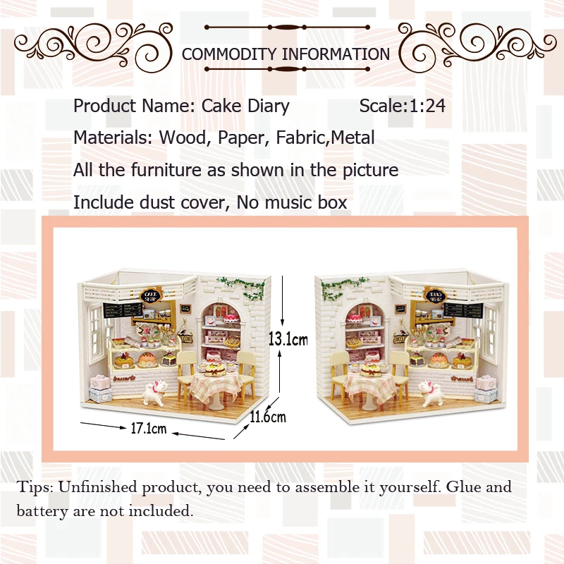 Кукольный дом, мебель, миниатюрный пылезащитный 3D-чехол, деревянные миниатюры, магазин тортов, кукольный домик, игрушки для детей, подарки, Дневник для тортов